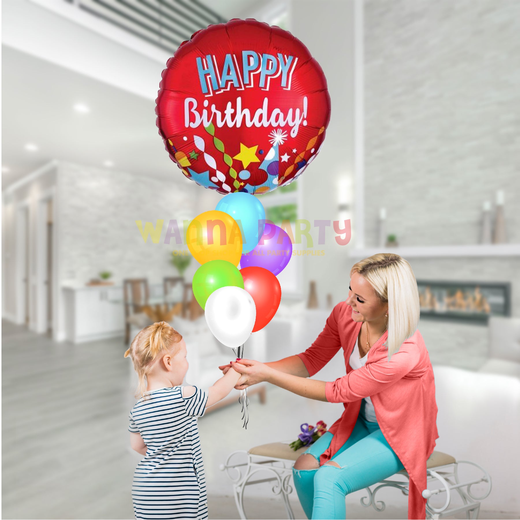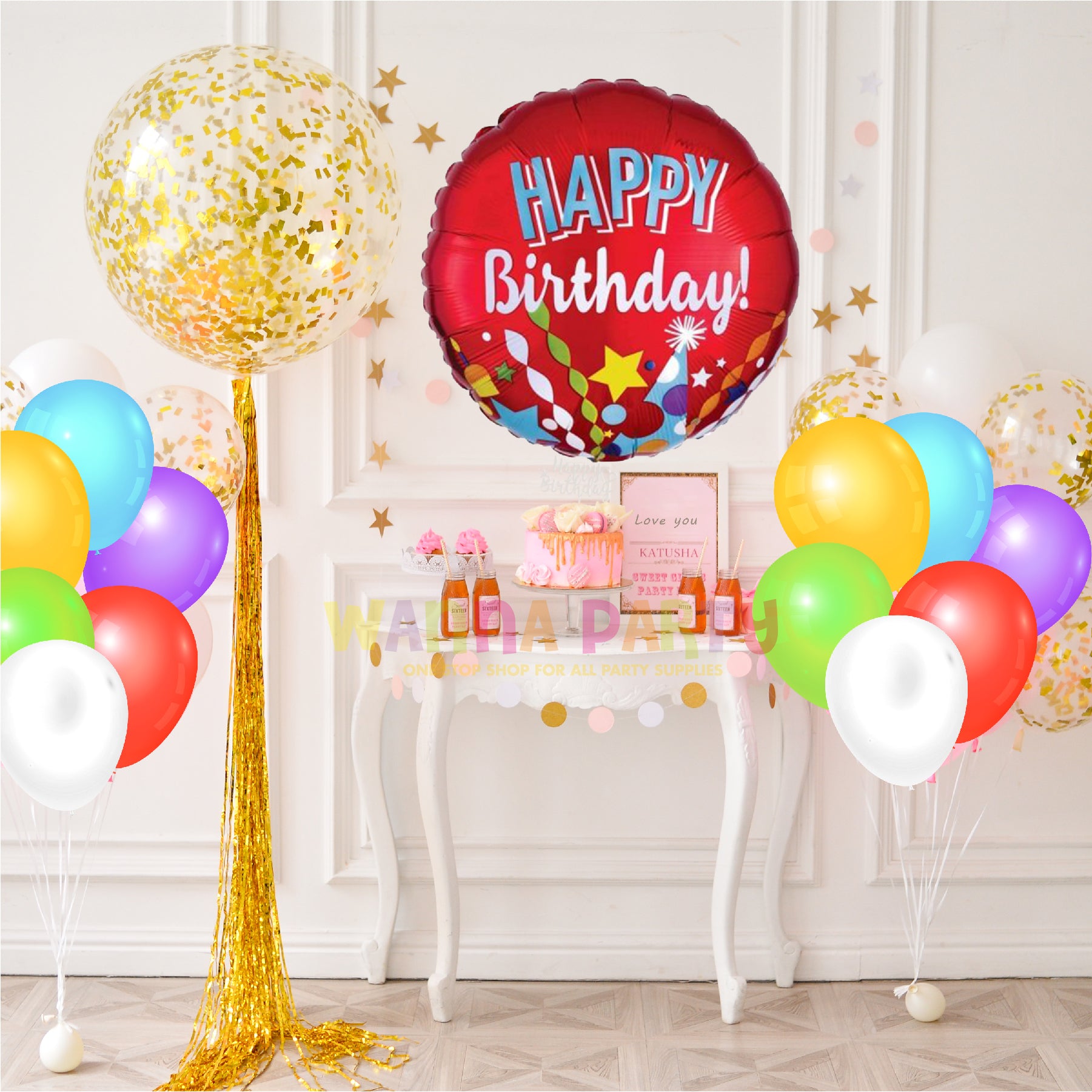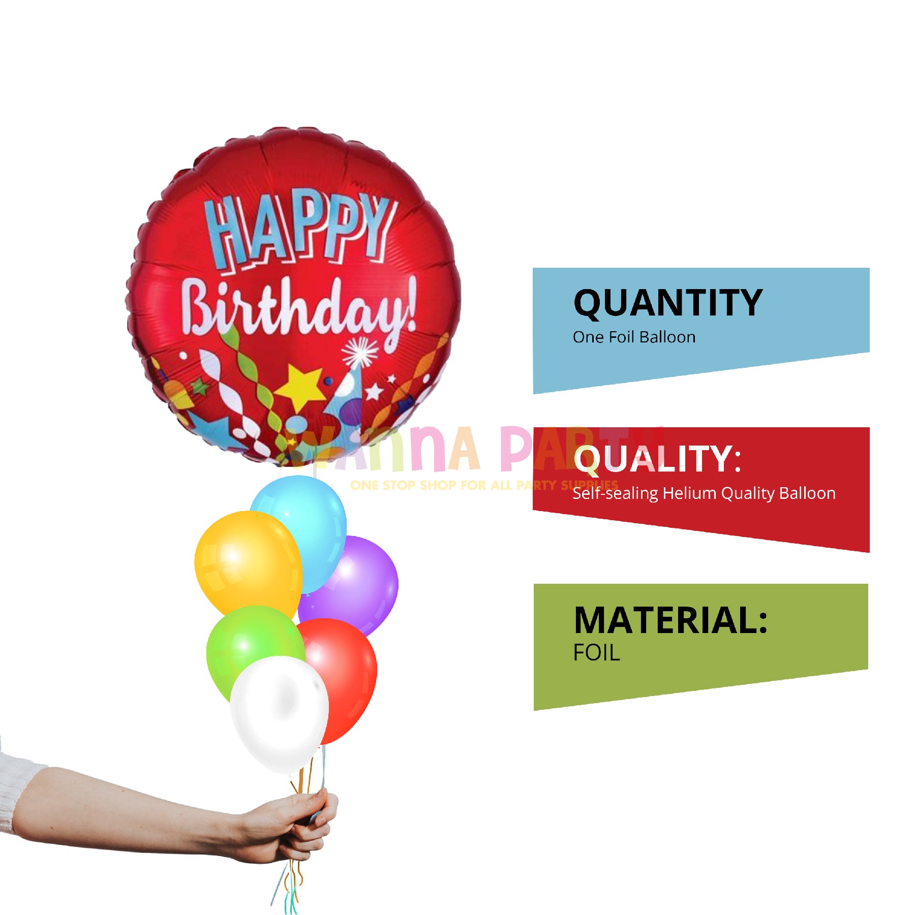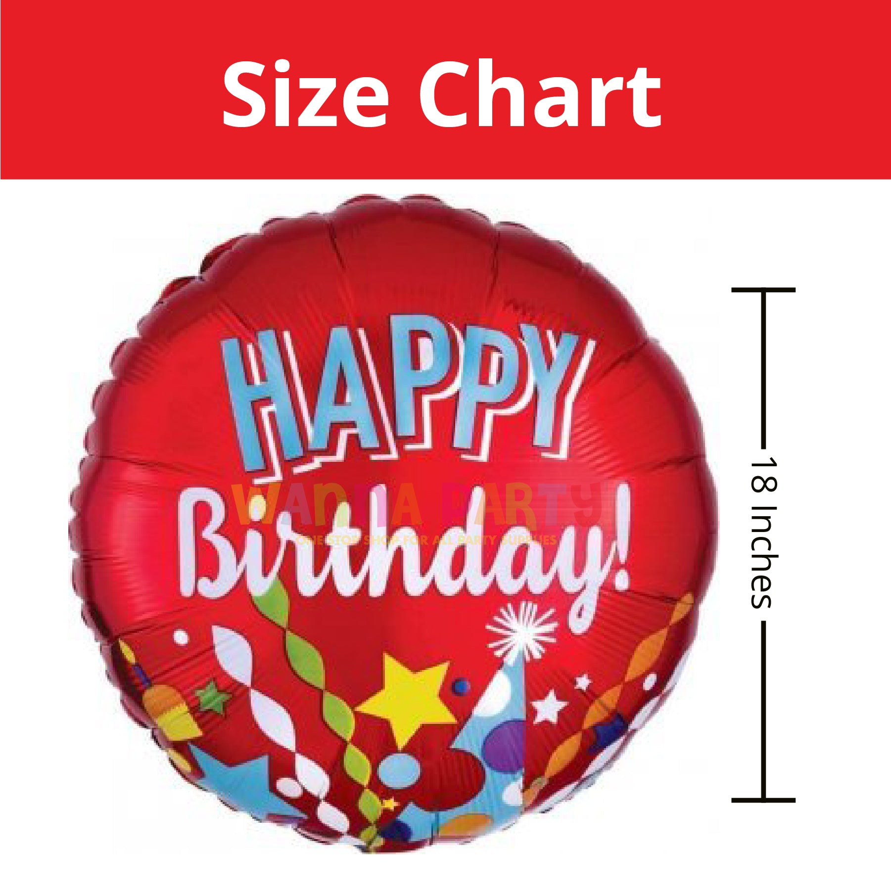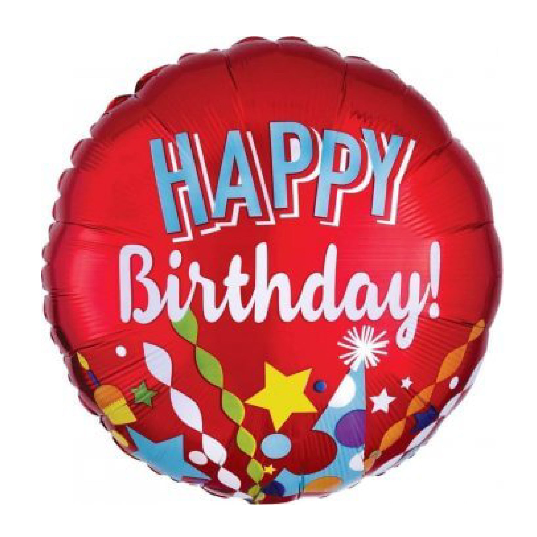 Vibrant Design: Bursting with bright colors, stars, party hats, and confetti graphics, this festive balloon brings instant joy to any birthday celebration. The bold “Happy Birthday” message stands out against the red background, making it a cheerful party highlight.