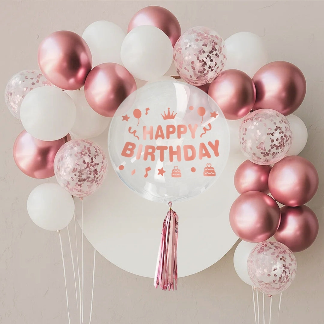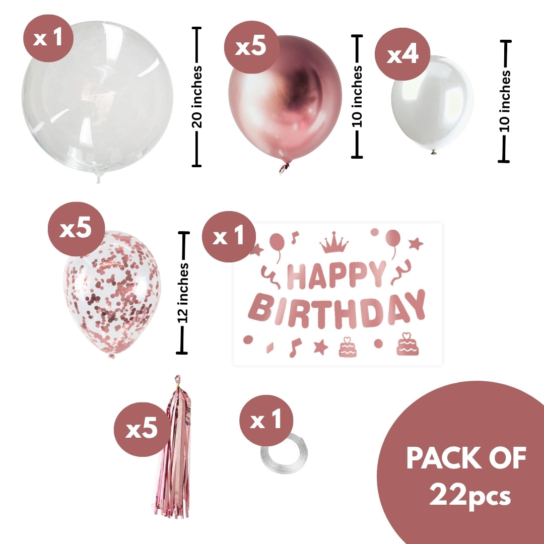 Happy Birthday Rose Gold Balloons and Rose Gold Confetti Balloons Combo Set - 22PC