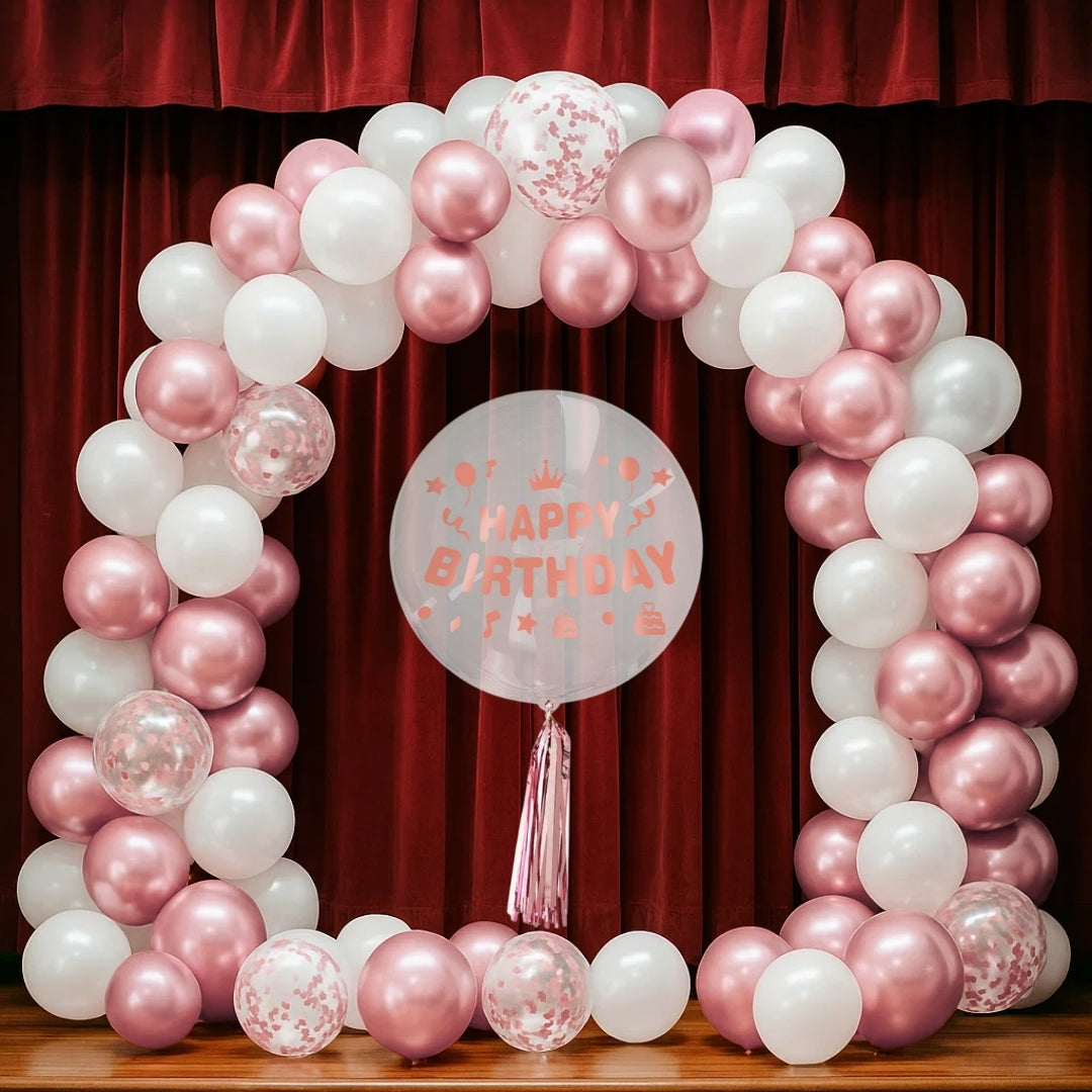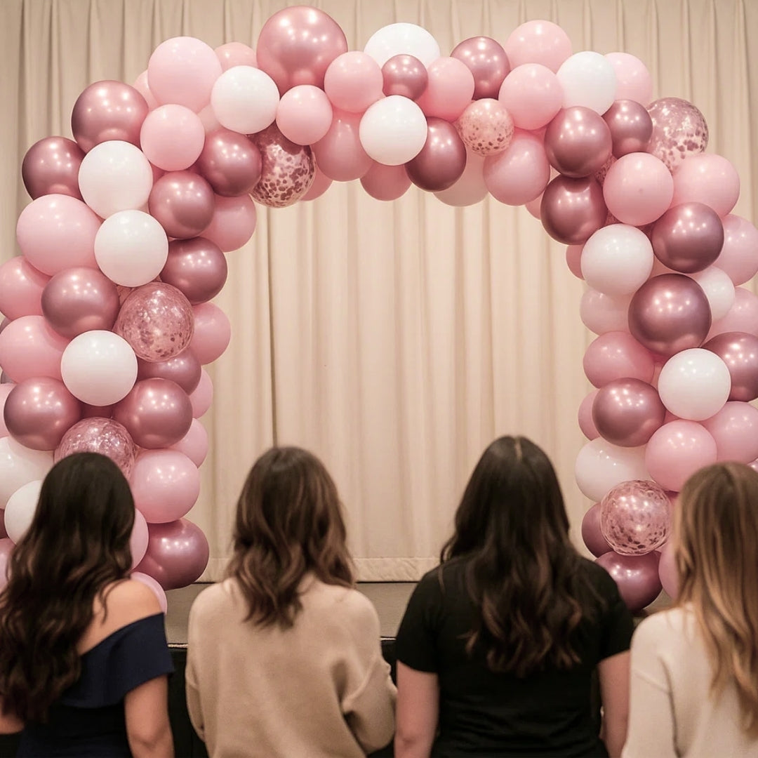 Shimmering Confetti Accents: Comes with 5 pcs of 12-inch rose gold confetti balloons filled with sparkling foil for an extra pop of fun and elegance that catches the light beautifully.