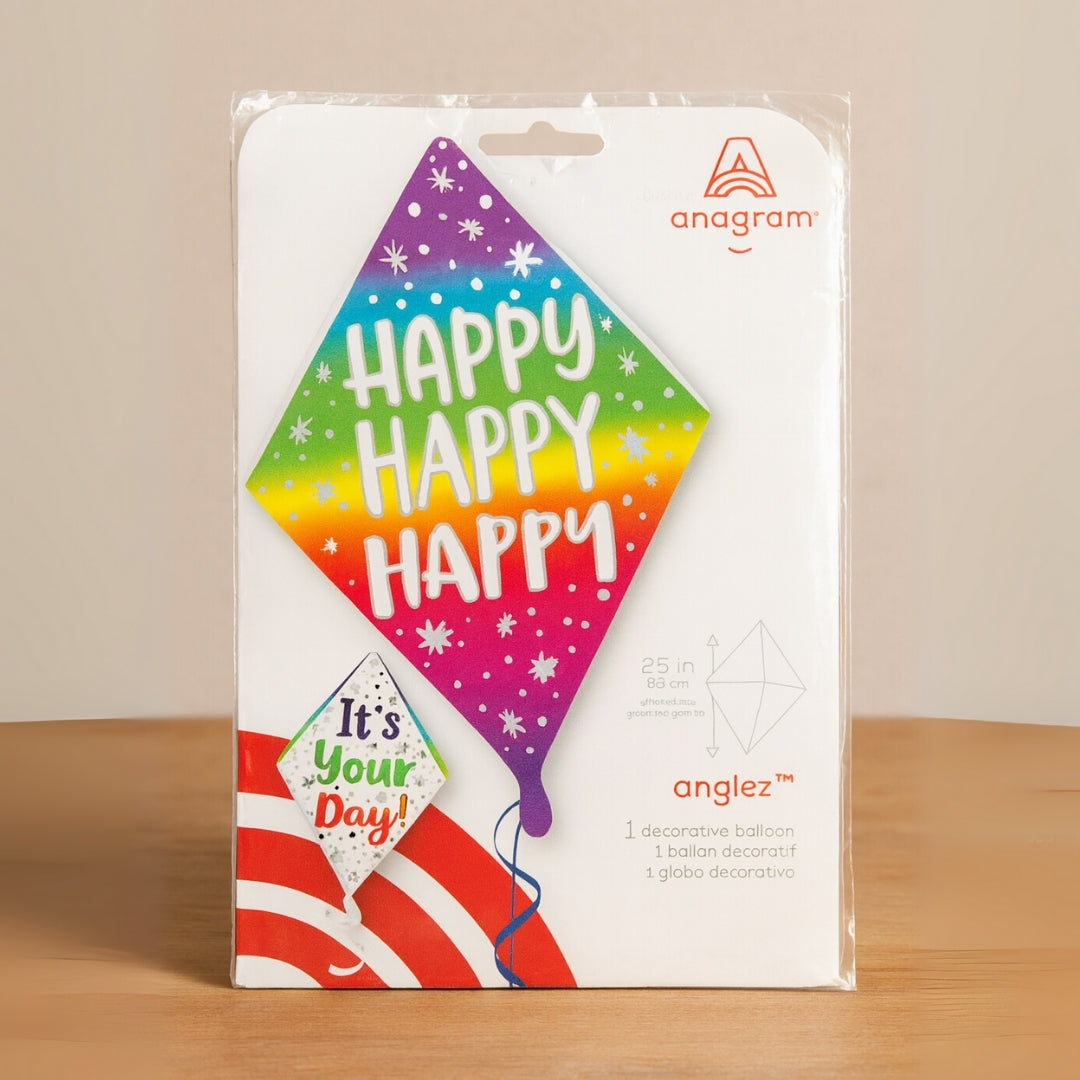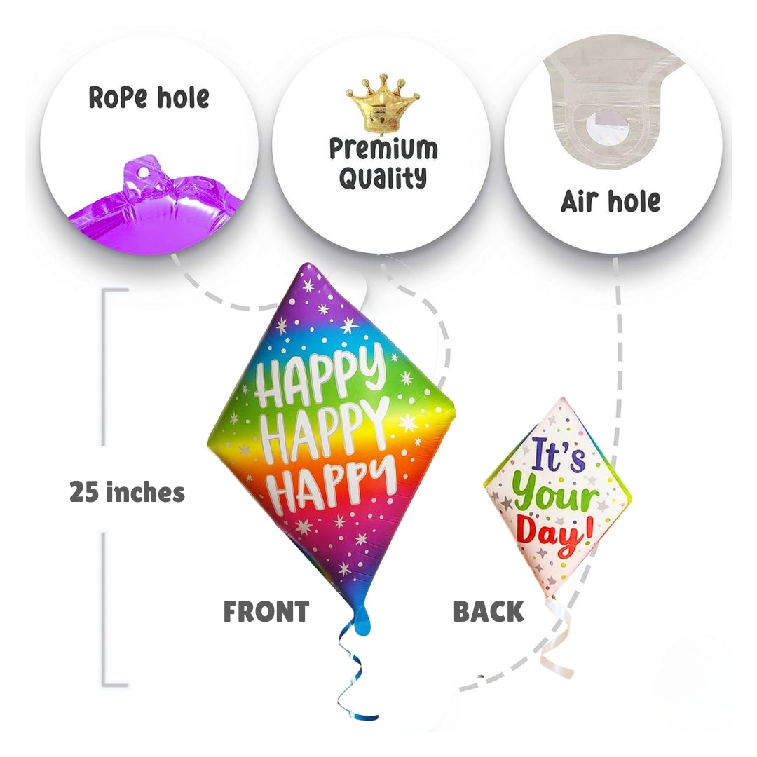 Happy Happy Happy Diamond Shape Foil Ballon - Air Filled or Helium Quality - 25 inches -1PC