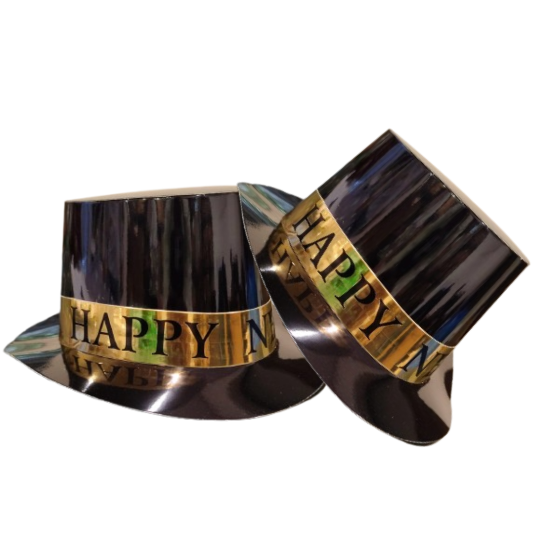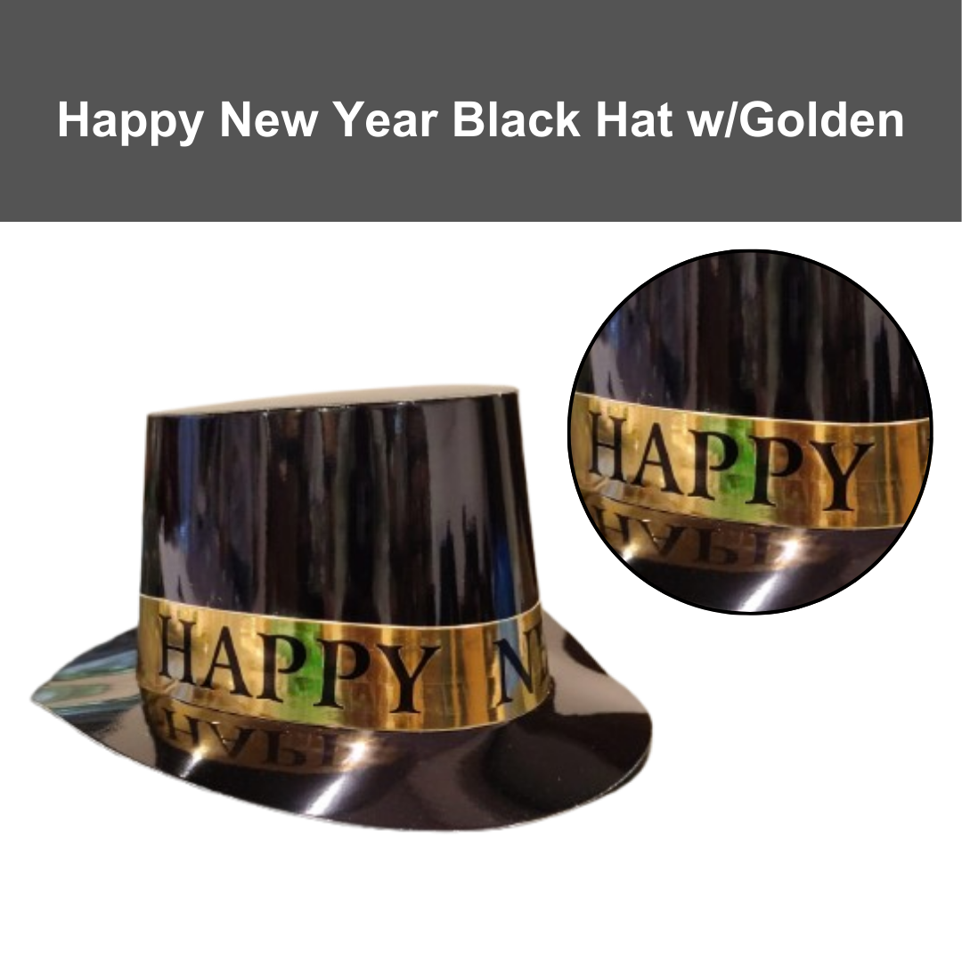 Happy New Year Black Hat w/Golden Text Print - 1PC