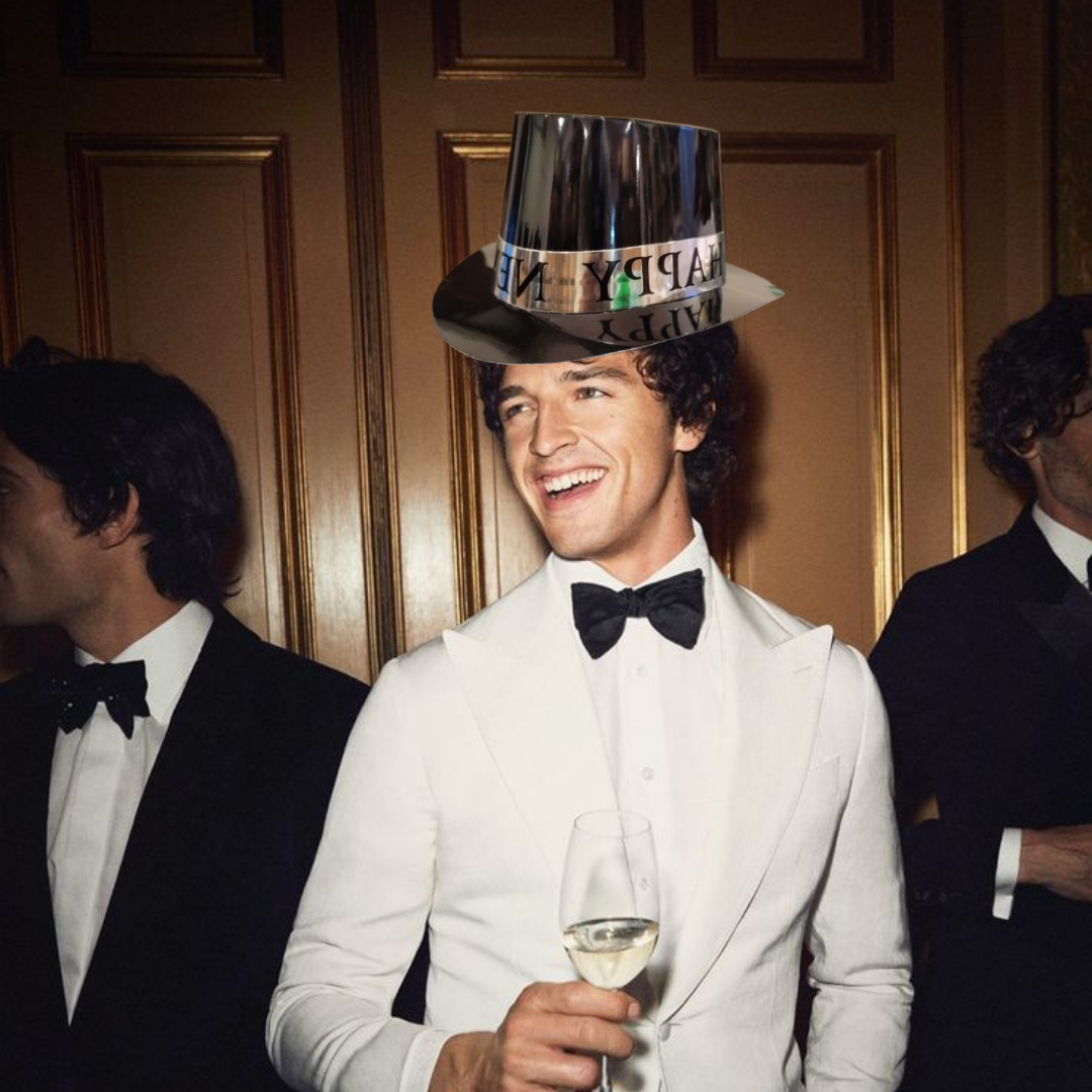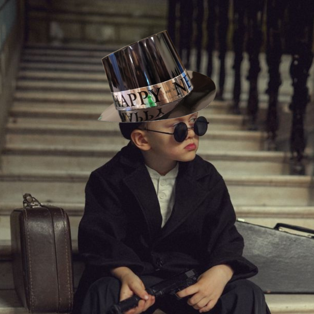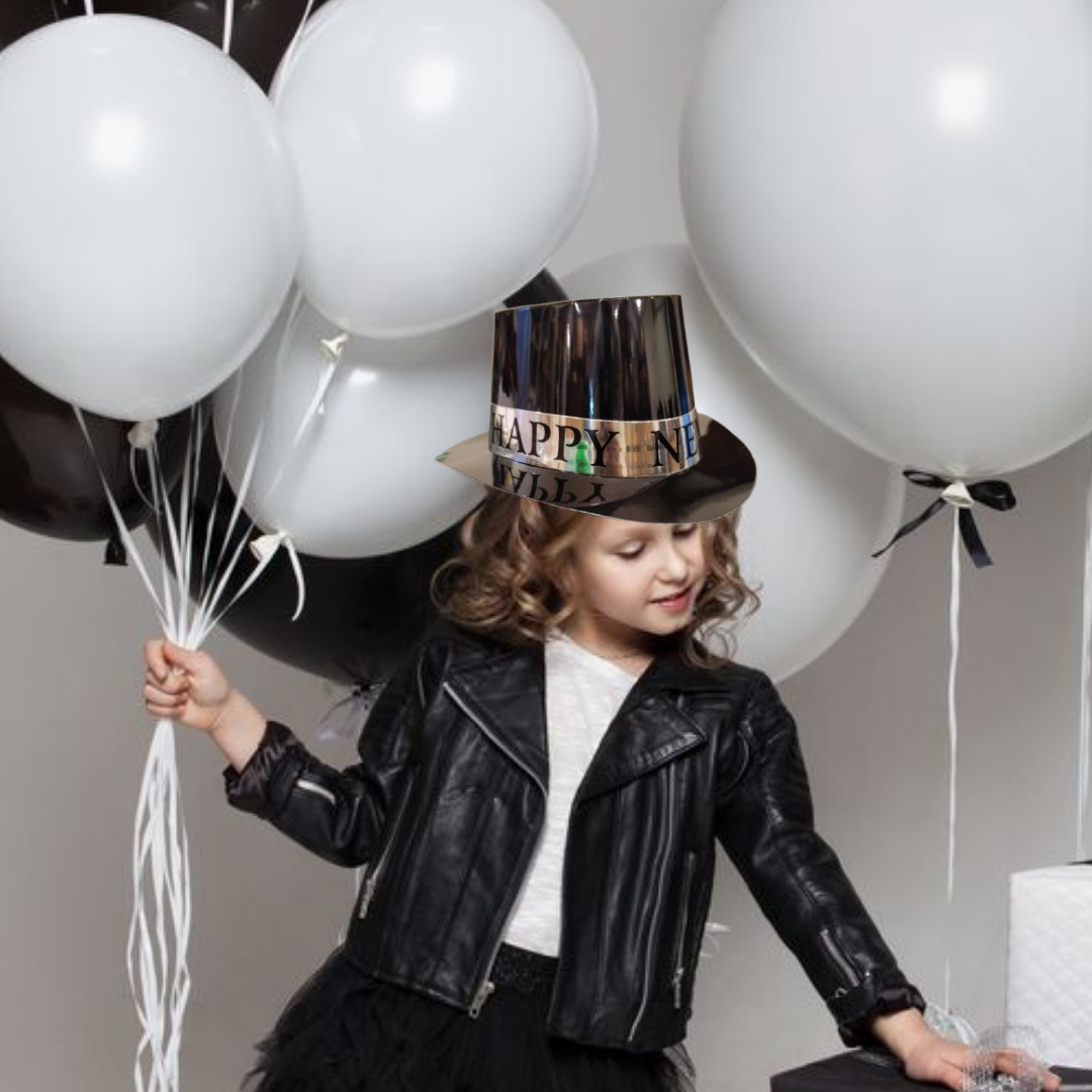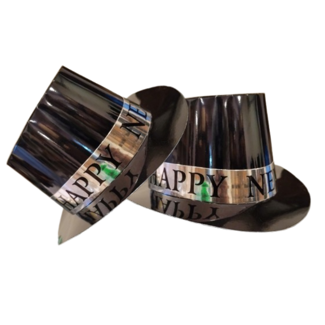Classic New Year Design: Features a sleek black hat accented with silver text or decorations, adding a festive and sophisticated look to your New Year celebrations.