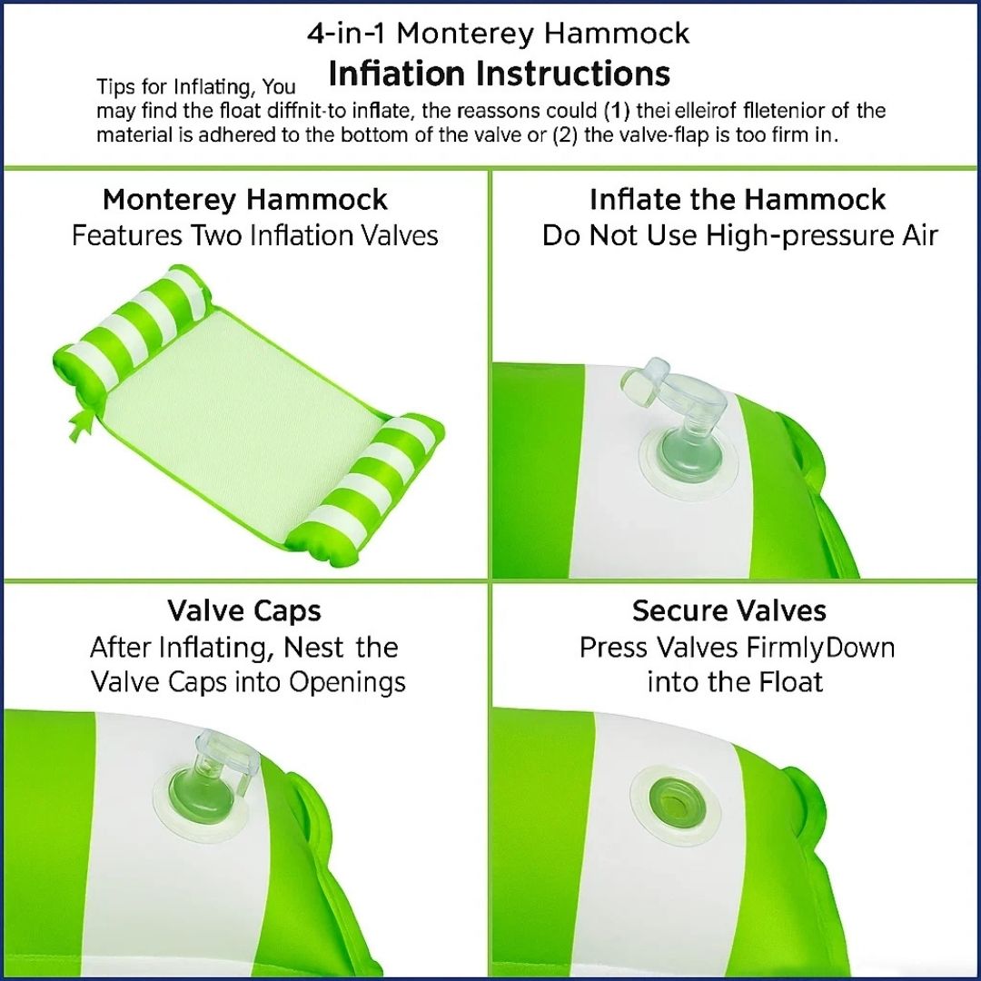 Pool Floats 4 in 1 Multipurpose: This multifunctional pool floats can be used as a pool hammock, pool floats, lounge chair, drifter or saddle, etc. You can change the posture of the water hammock as needed to meet your various needs. The pool tools adult brings you a pleasant experience of various enjoyments, you can easily relax in the water, when on vacation or traveling, very suitable for use in swimming pools, beaches, oceans, lakes, etc.
