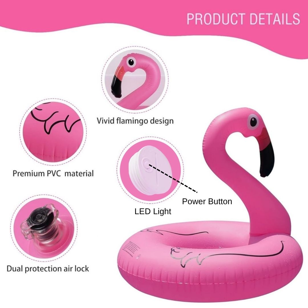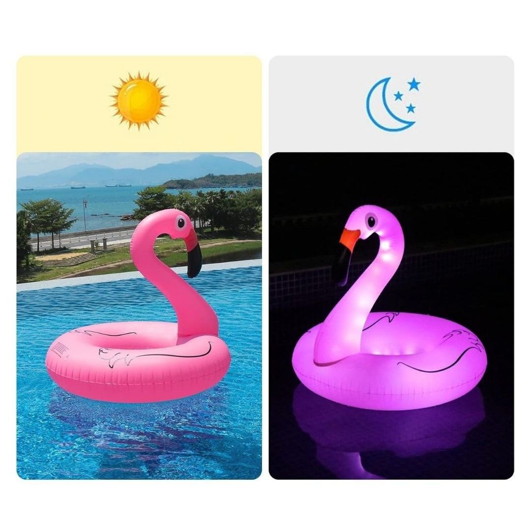 Inflatable Flamingo Pool Ring with Light - 1PC