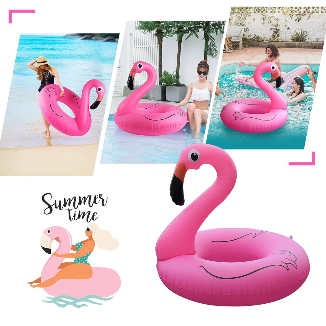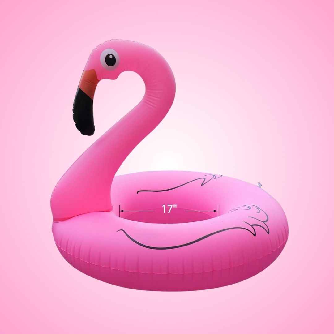 Eye-Catching Flamingo Design: Make a bold statement at your next pool party with this vibrant hot pink flamingo-shaped ring float. The oversized flamingo head and sleek circular body add a fun and stylish tropical vibe to any pool or beach day.