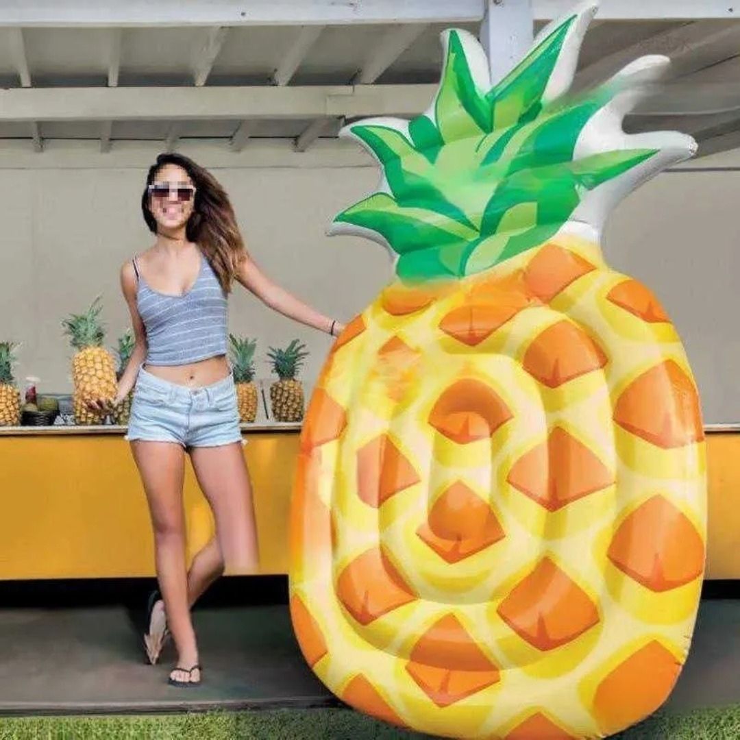 Fun & Tropical Pineapple Design: Features a vibrant yellow body with realistic pineapple detailing and a bold green leafy top, bringing tropical vibes and playful charm to any pool day.