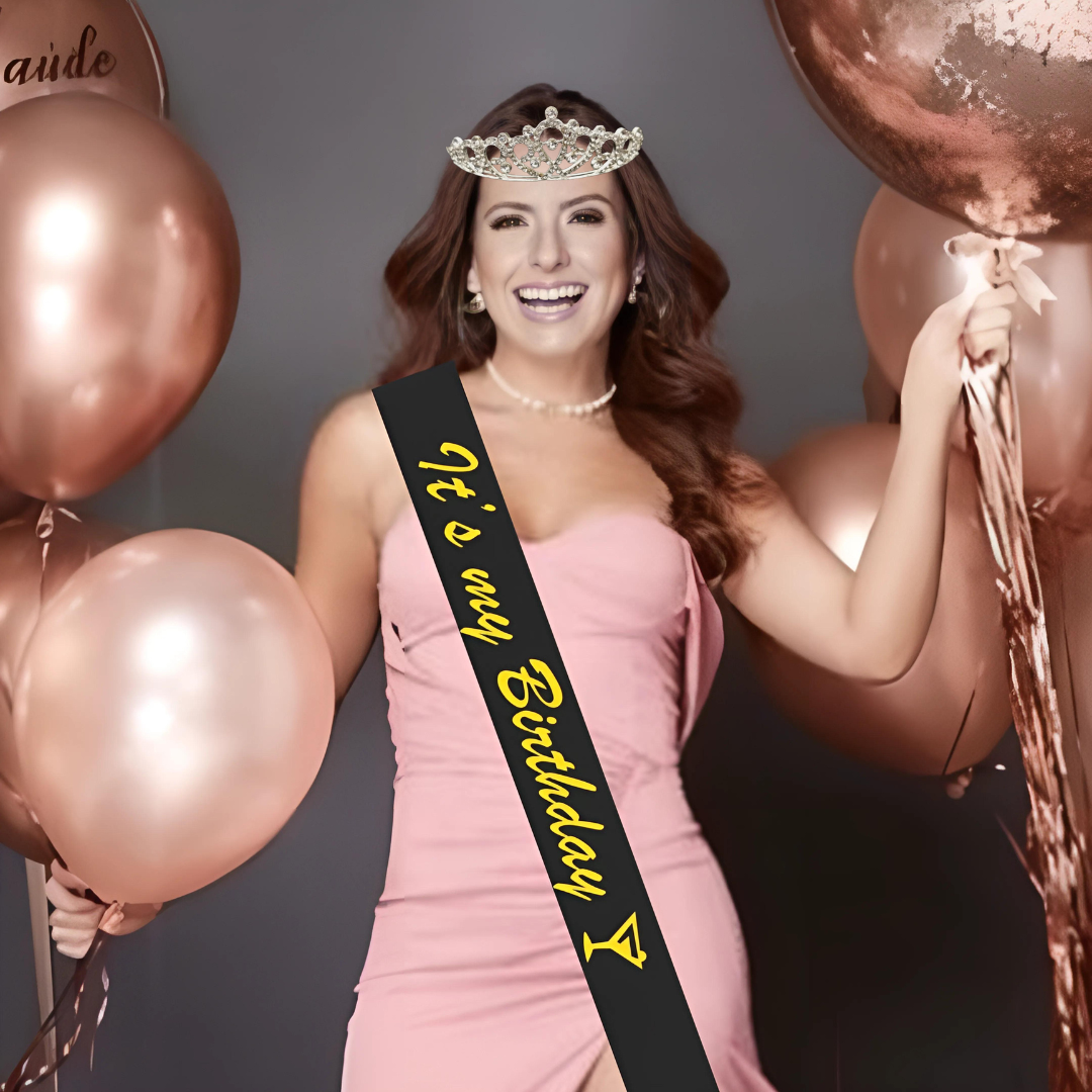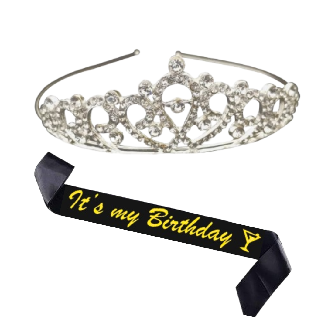 Its My Birthday Black Sash & Crown w/ Rhinestone Combo - 2PC