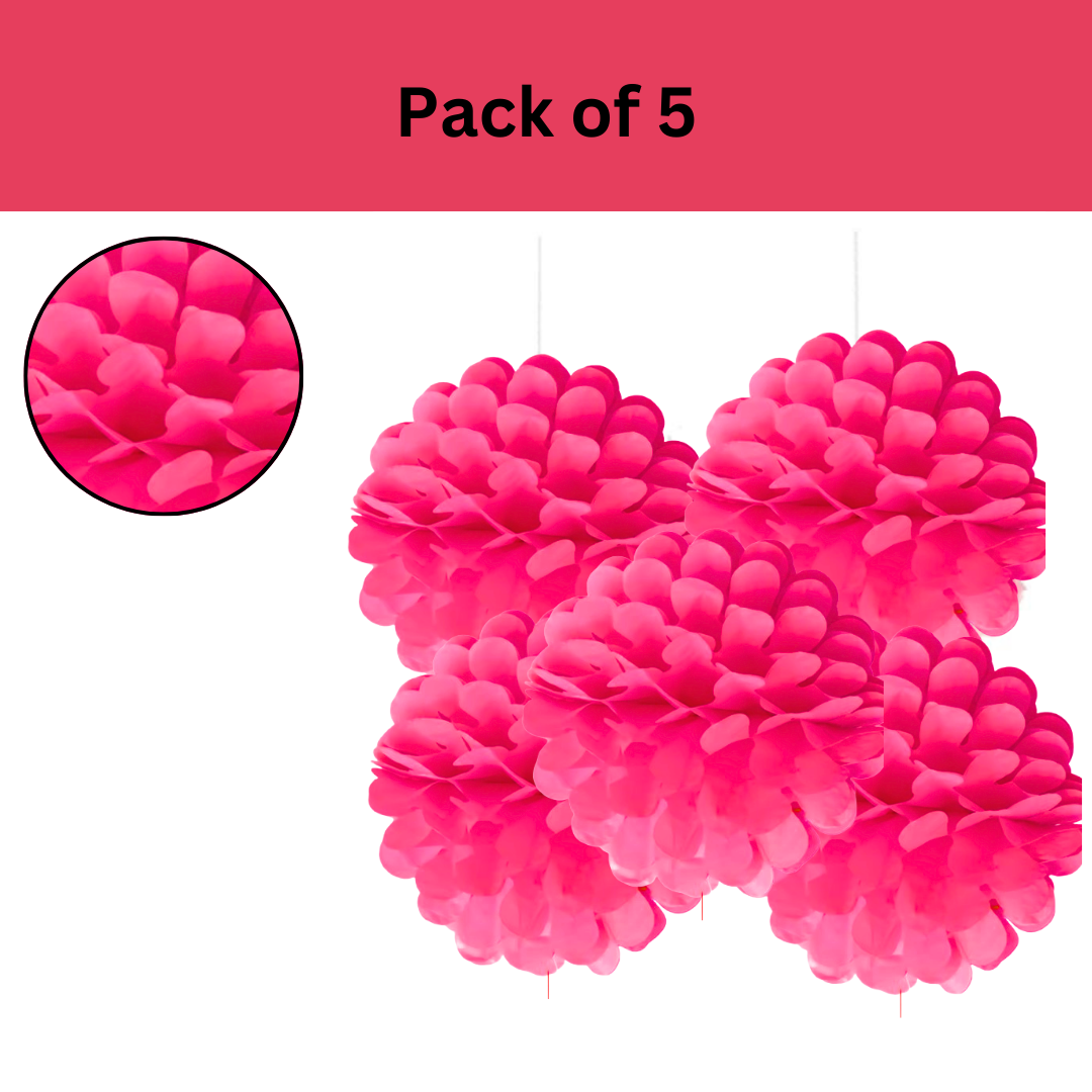 INSIDE THE PACK: The pack contains Paper Pom Pom Hangings for Decoration, Fluffy Decoration- Hot Pink, PACK OF - 5