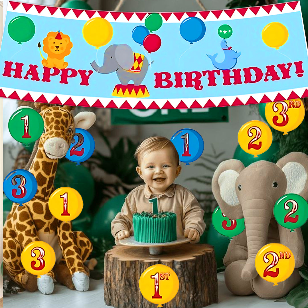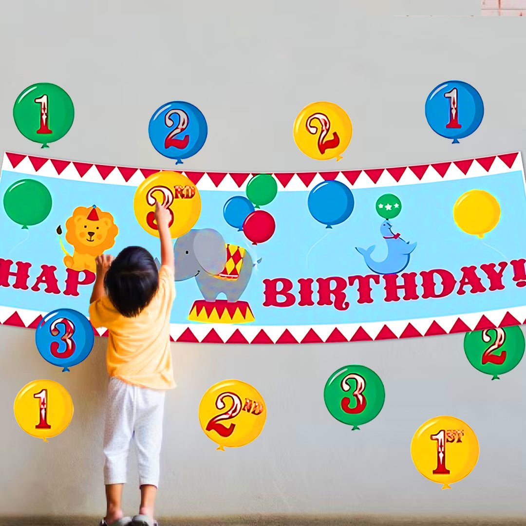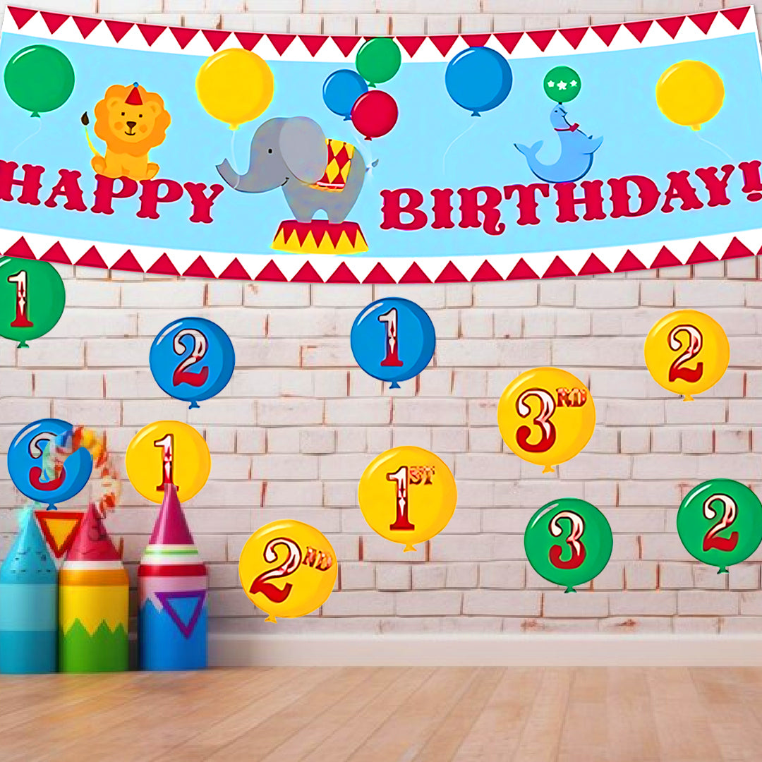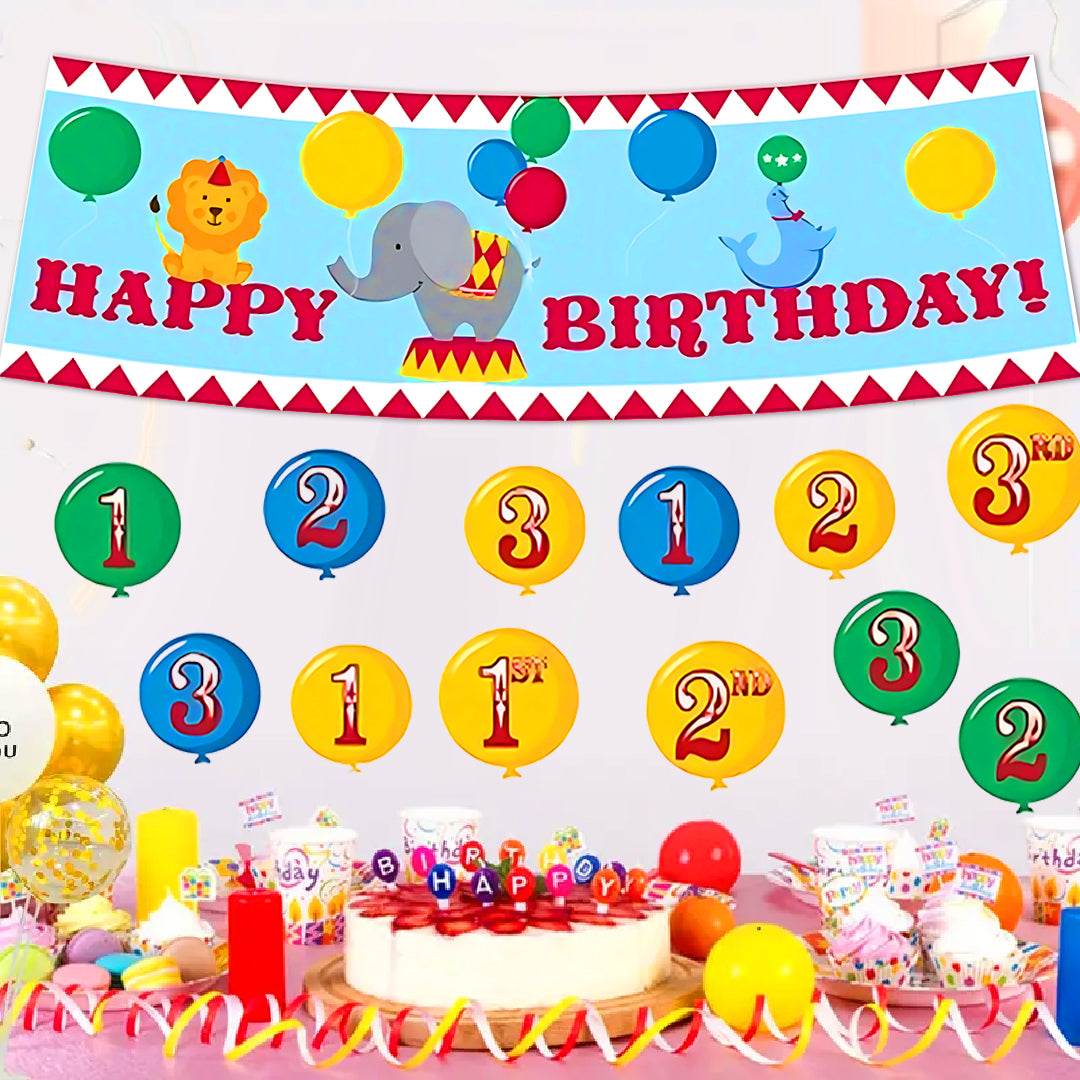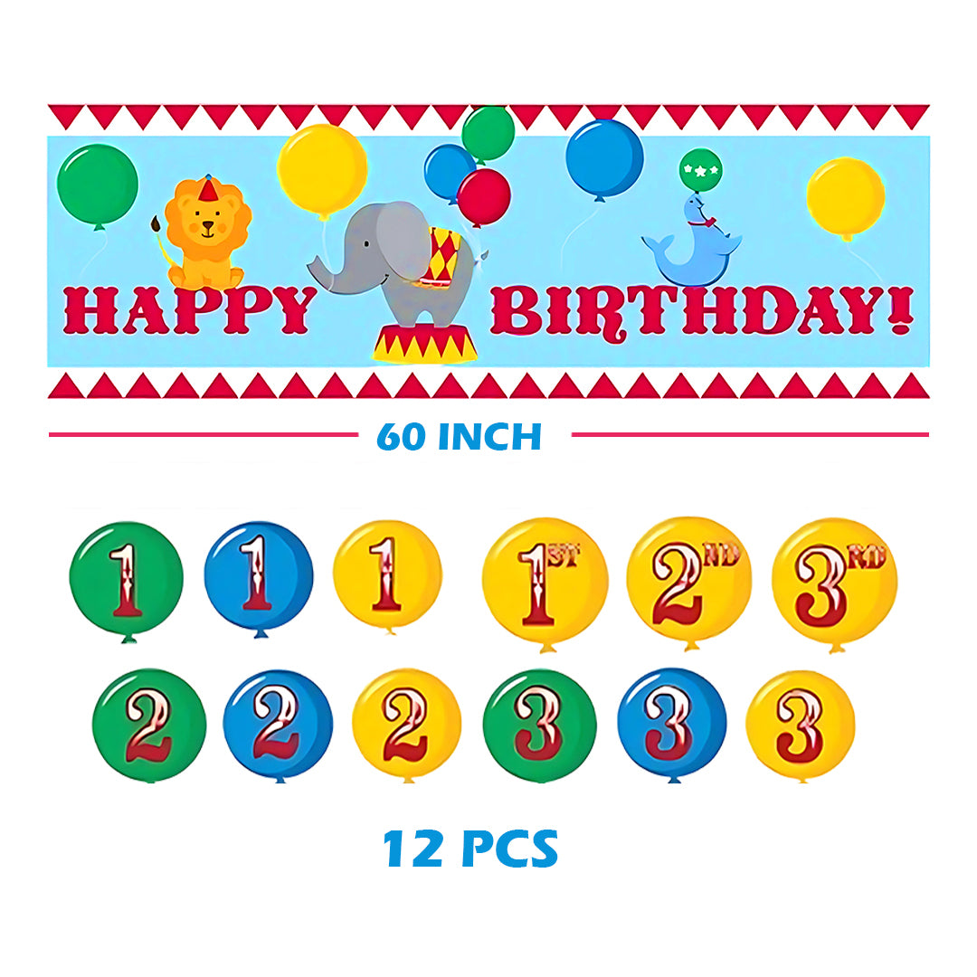 Circus Theme Happy Birthday Party Banner with Stickers - 13PC