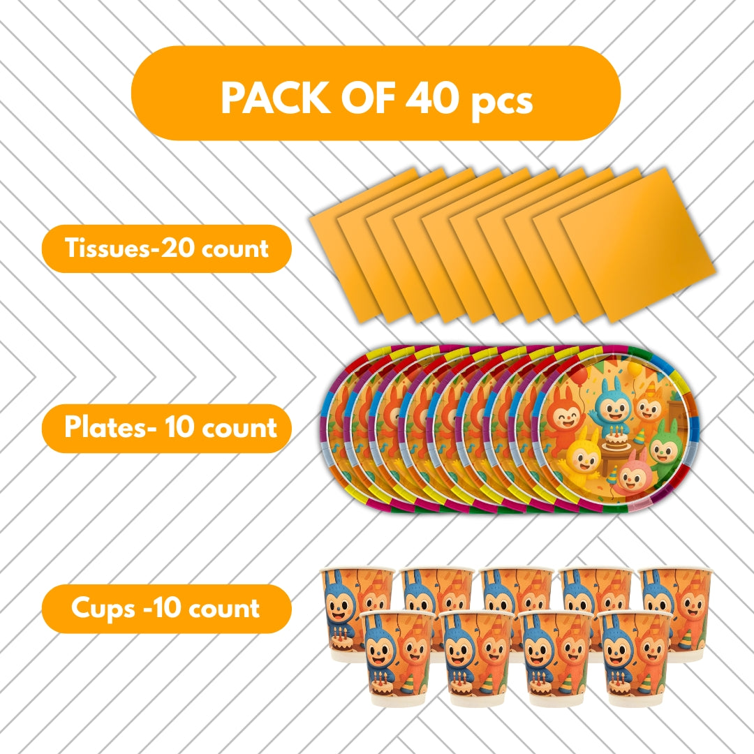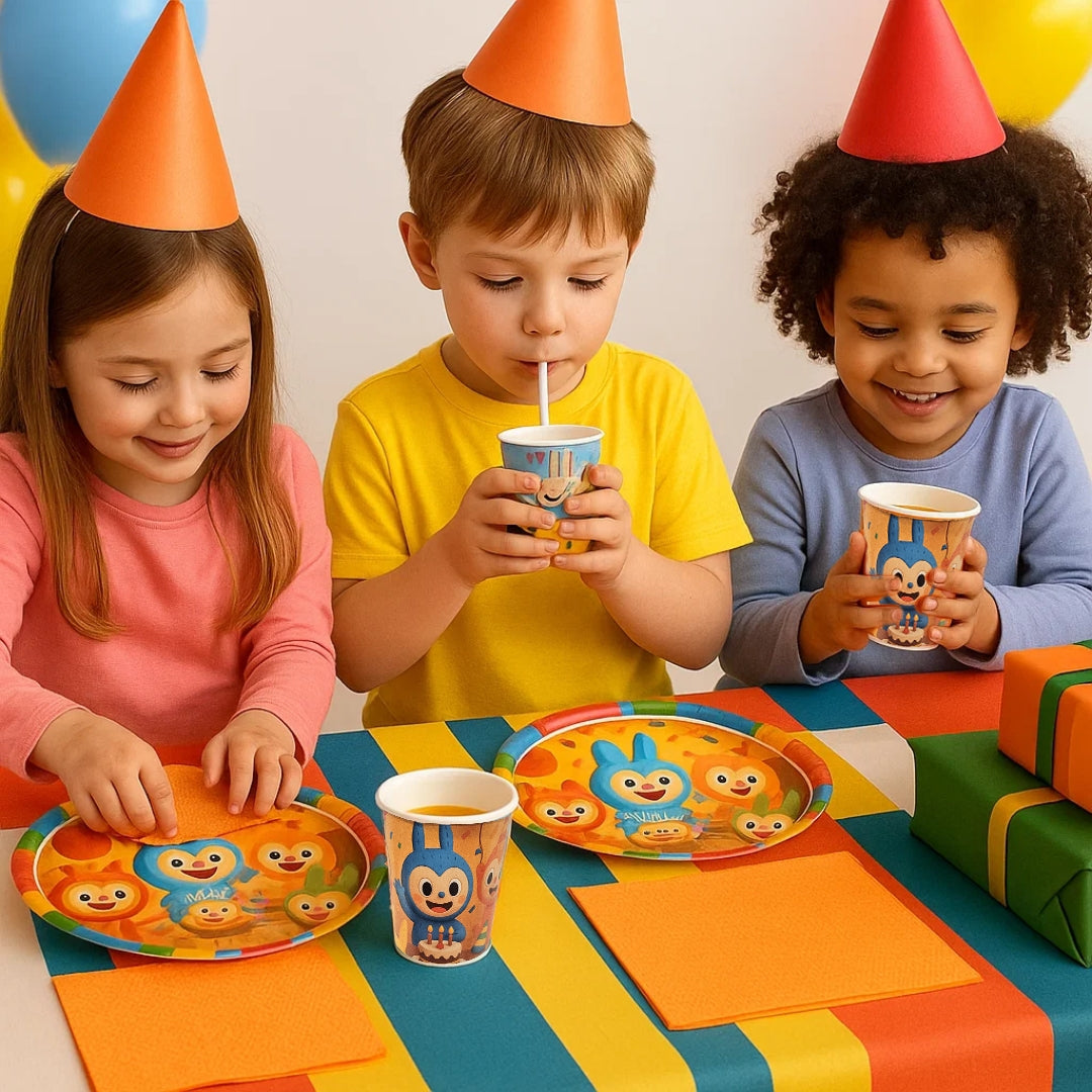 Complete Party Tableware Set (36 Pieces): This all-in-one set includes 8 themed party plates, 8 paper cups, and 20 bright orange napkins — perfect for serving food and drinks at a monster-themed birthday party. A convenient and fun solution for hosting a stress-free celebration.