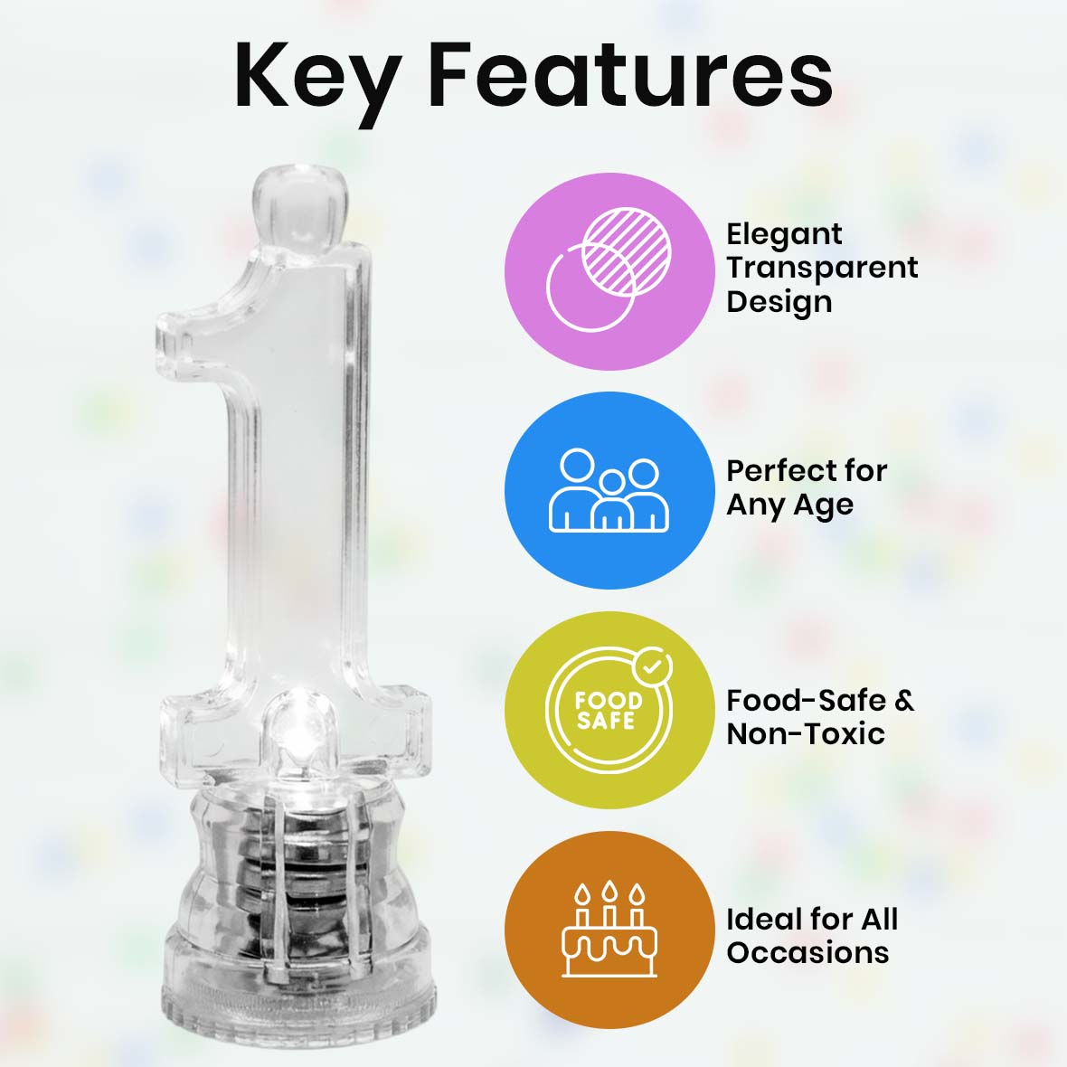 Elegant Transparent Design: The Transparent Candle No. 1 features a clean, crystal-clear finish that blends beautifully with any cake theme. Its minimal yet stylish look adds a modern touch to birthday cakes without overpowering the decoration.