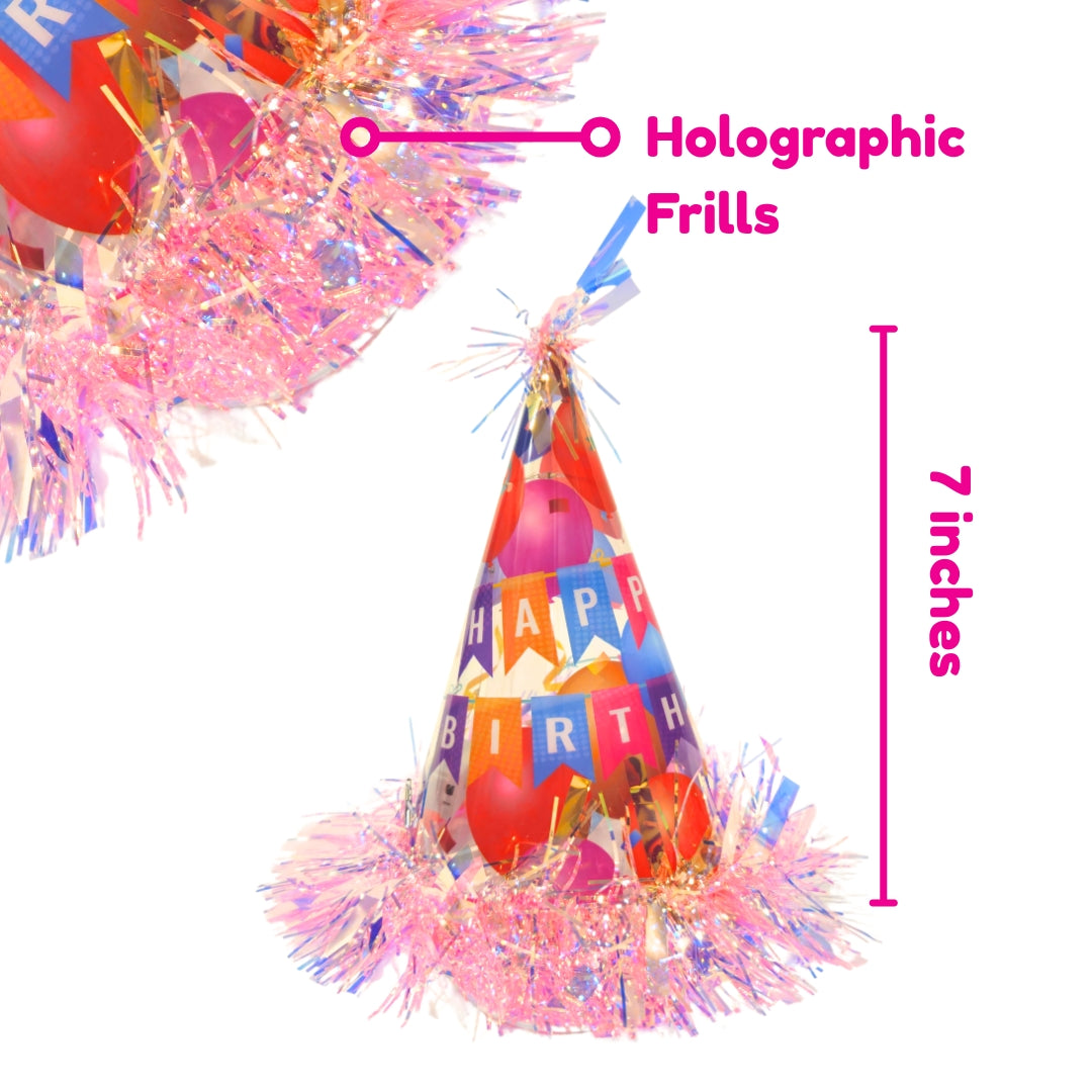 Pretty Pink Fringes: Trimmed with soft pink fringes around the base, the hat adds a playful and stylish flair, perfect for kids, teens, or anyone who wants to party in style.