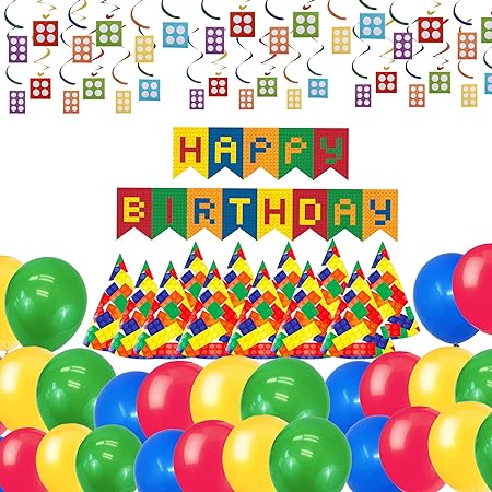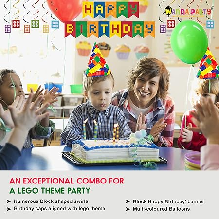 EXCEPTIONAL BACKGROUND: Create a stunning background in no time. This Lego decoration combo includes a banner and several swirl decorations which comes in handy to decorate the background without any fuss.