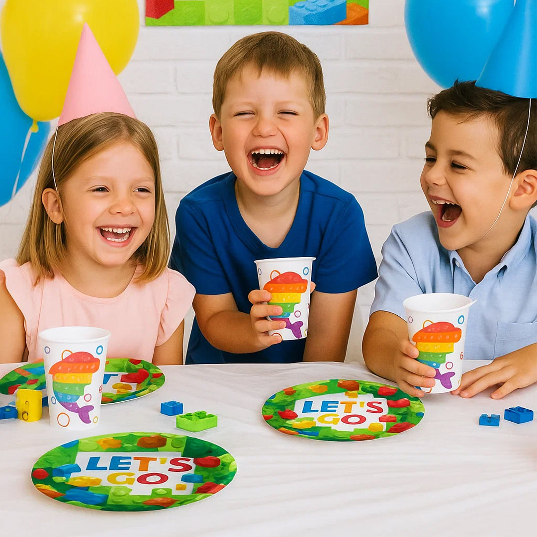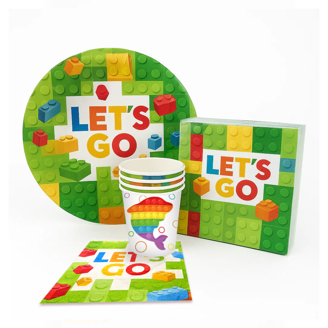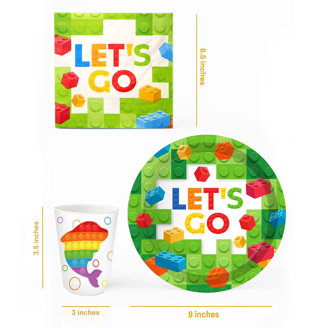 Eye-Catching Building Blocks Design: Featuring a bright and playful building blocks pattern, this set adds a pop of color and creativity to any celebration. Perfect for lego inspired parties, kids' birthdays, playdates, or classroom events.