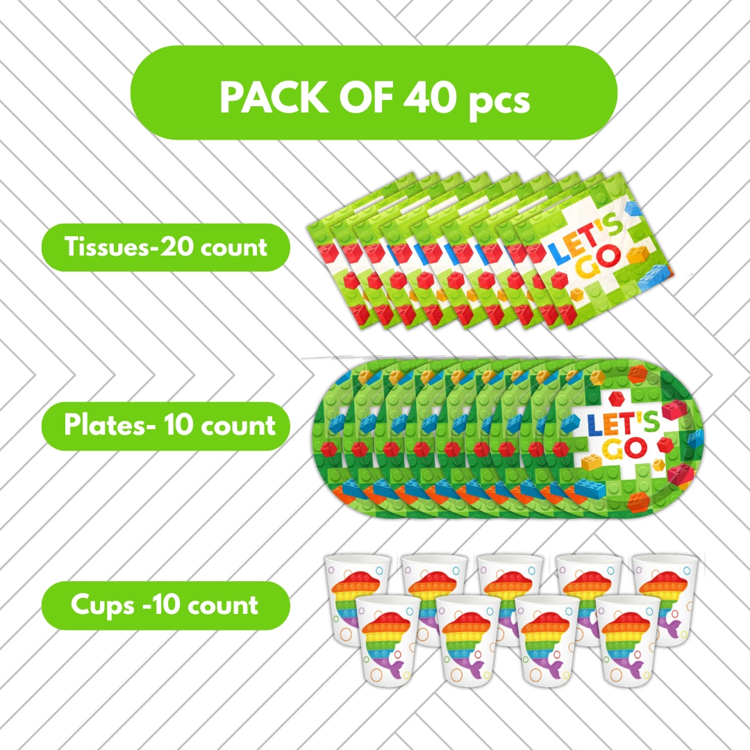 Lego Theme Party Tableware set of 40- Plates, Cups and Napkins