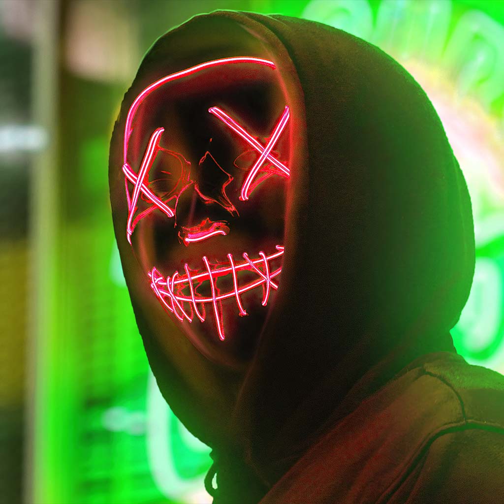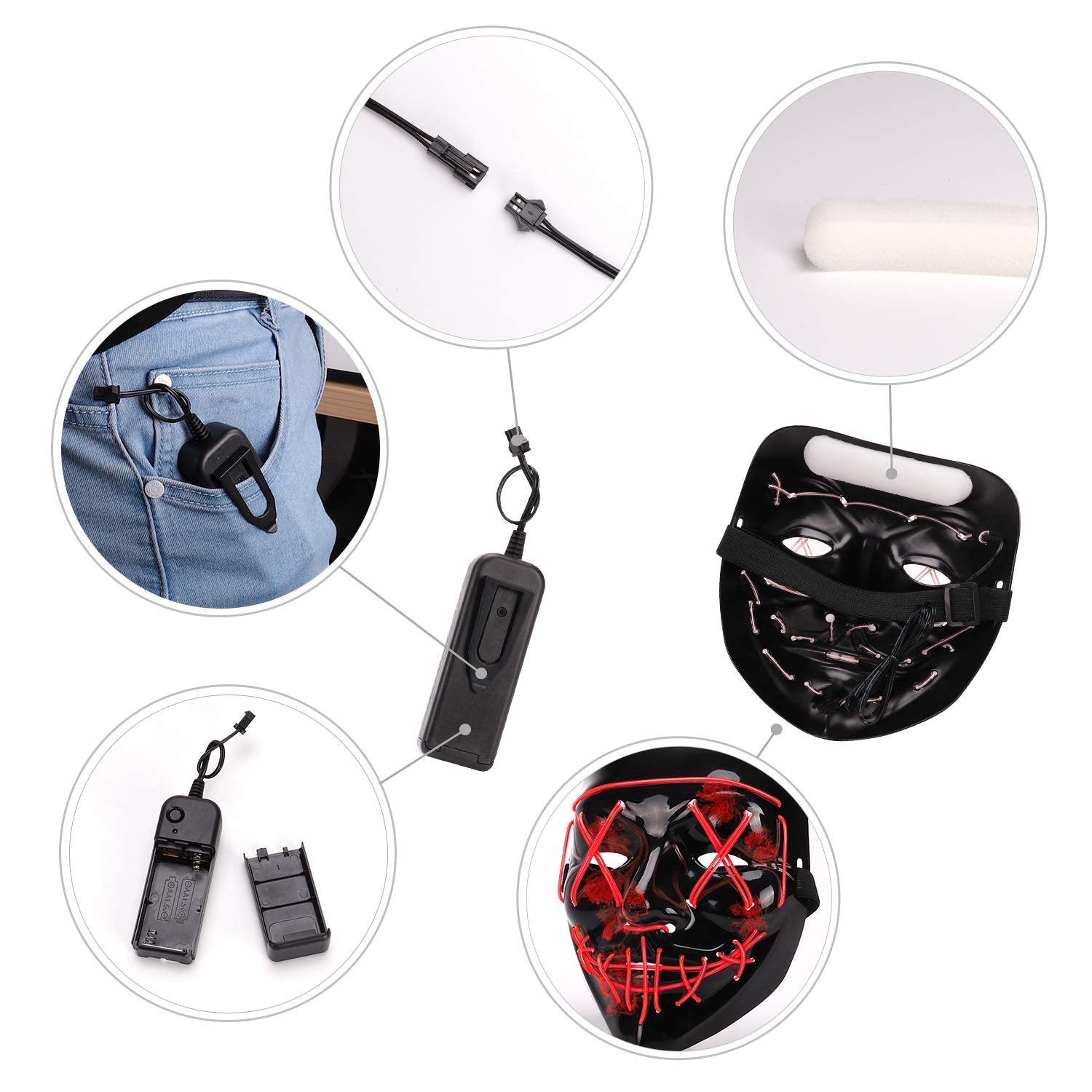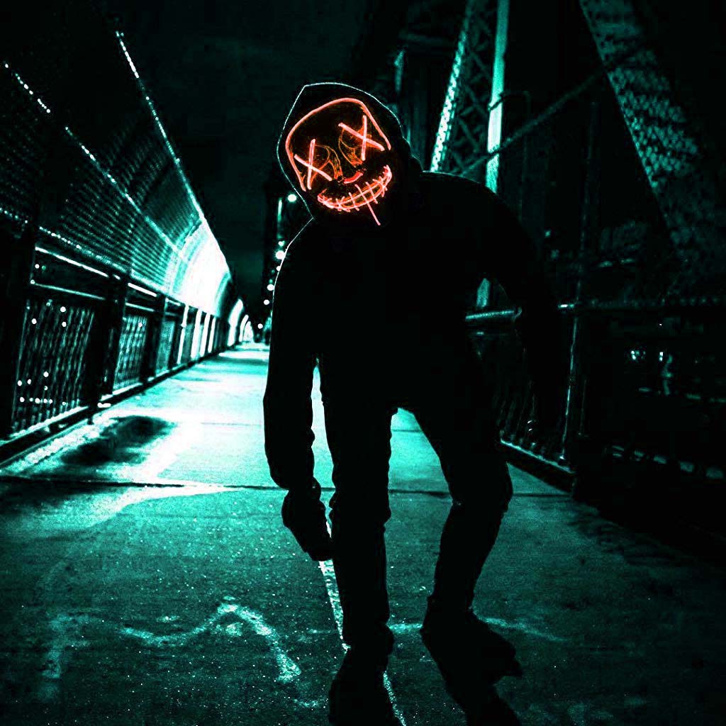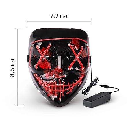 LED Lighting Effect: The mask includes built-in LED lights that illuminate it, creating an eye-catching and eerie glow that enhances visibility and adds a dramatic flair in dark or dimly lit environments.