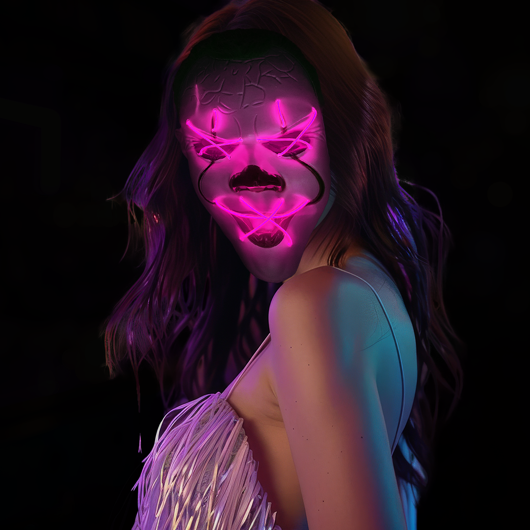 LED Lighting Feature:Equipped with built-in LED lights that illuminate the mask, creating a striking and eerie effect in dim or dark environments, perfect for a dramatic appearance.
