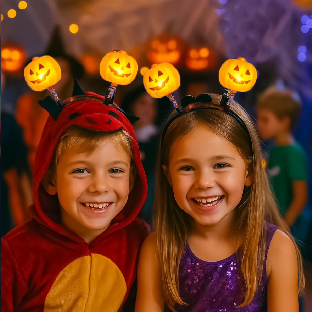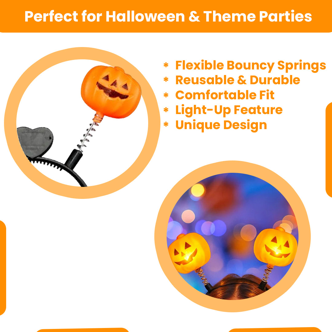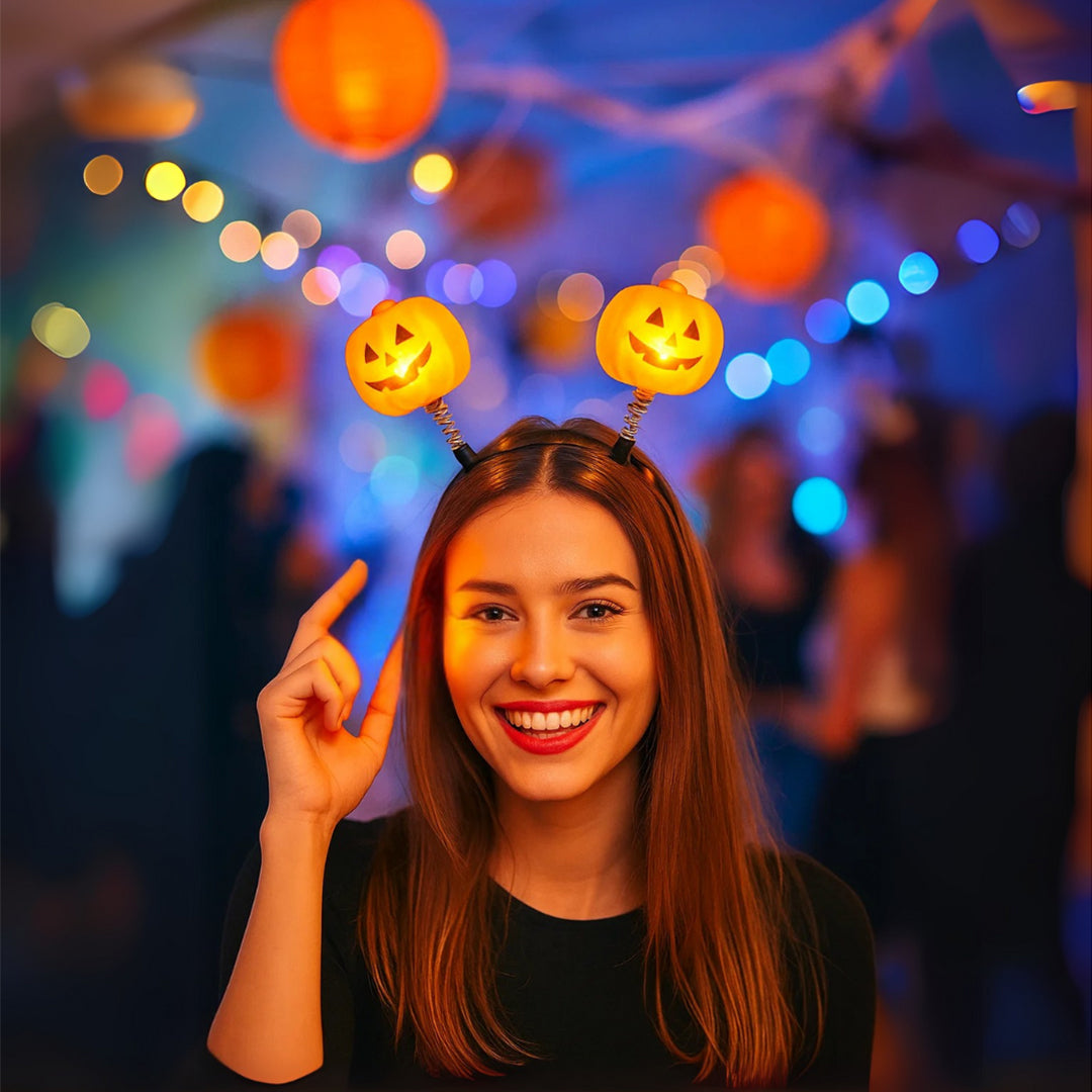 Light-Up Pumpkin Popper Feature: Each headband comes with a spring-mounted pumpkin that bobbles and glows, adding movement and a fun jump-scare effect. The light-up feature enhances visibility in the dark, making it a hit during nighttime events and outdoor Halloween celebrations.