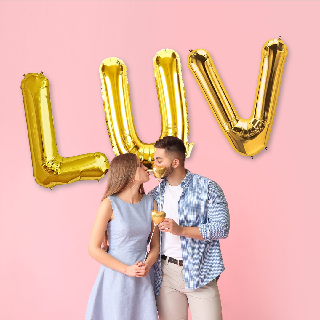 LUV Golden Foil Balloon Set - Helium or Air Filled - 40 inches - 3PC