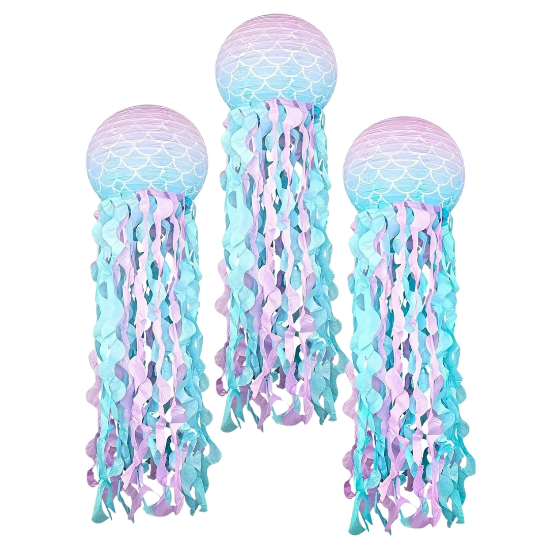 🧜♀️ Magical Under: the-Sea Theme: This enchanting set includes 3 jellyfish-style lanterns in beautiful shades of blue and pink, designed to bring a whimsical mermaid and ocean-inspired charm to any space or event.