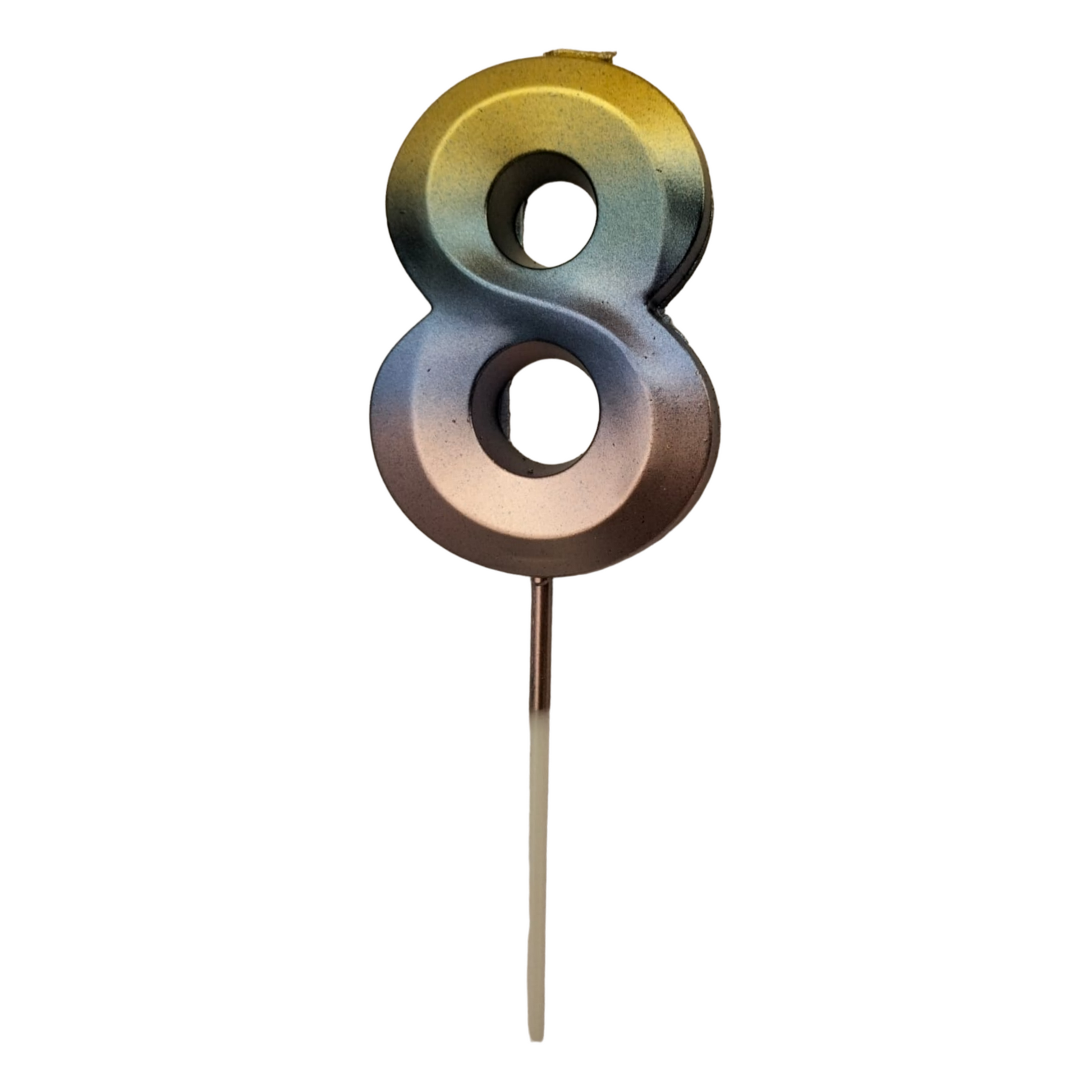 Number 8 Metalic Golden Purple Pink Stick Candle - 1PC