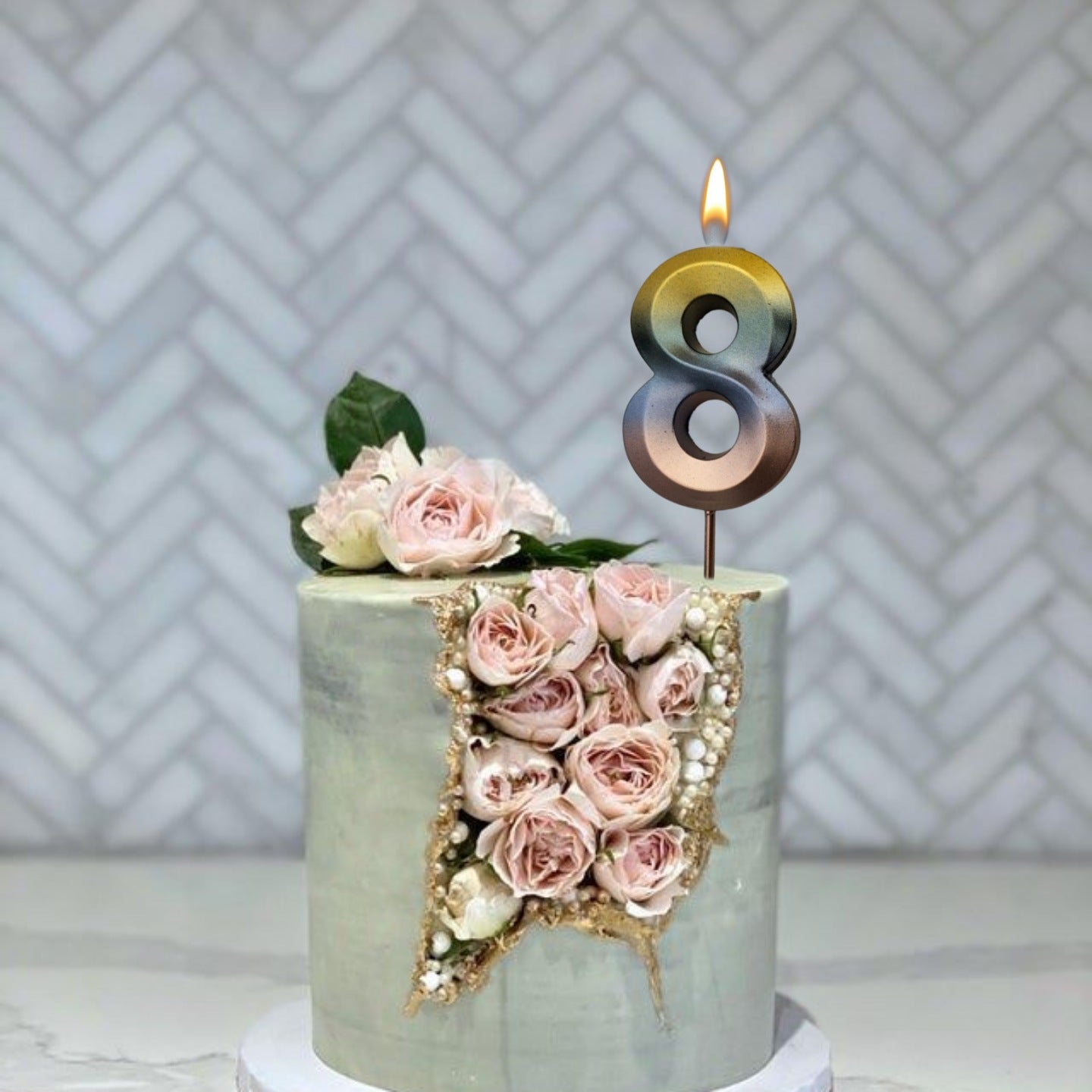 STYLISH DESIGN:Our Numerical Candle Number 8 features a sleek and stylish design that effortlessly enhances any cake, cupcake, or dessert. Featuring a beautiful metallic golden, purple and pink shade, the candle is carefully shaped into the number eight , ensuring a clear and distinct presentation