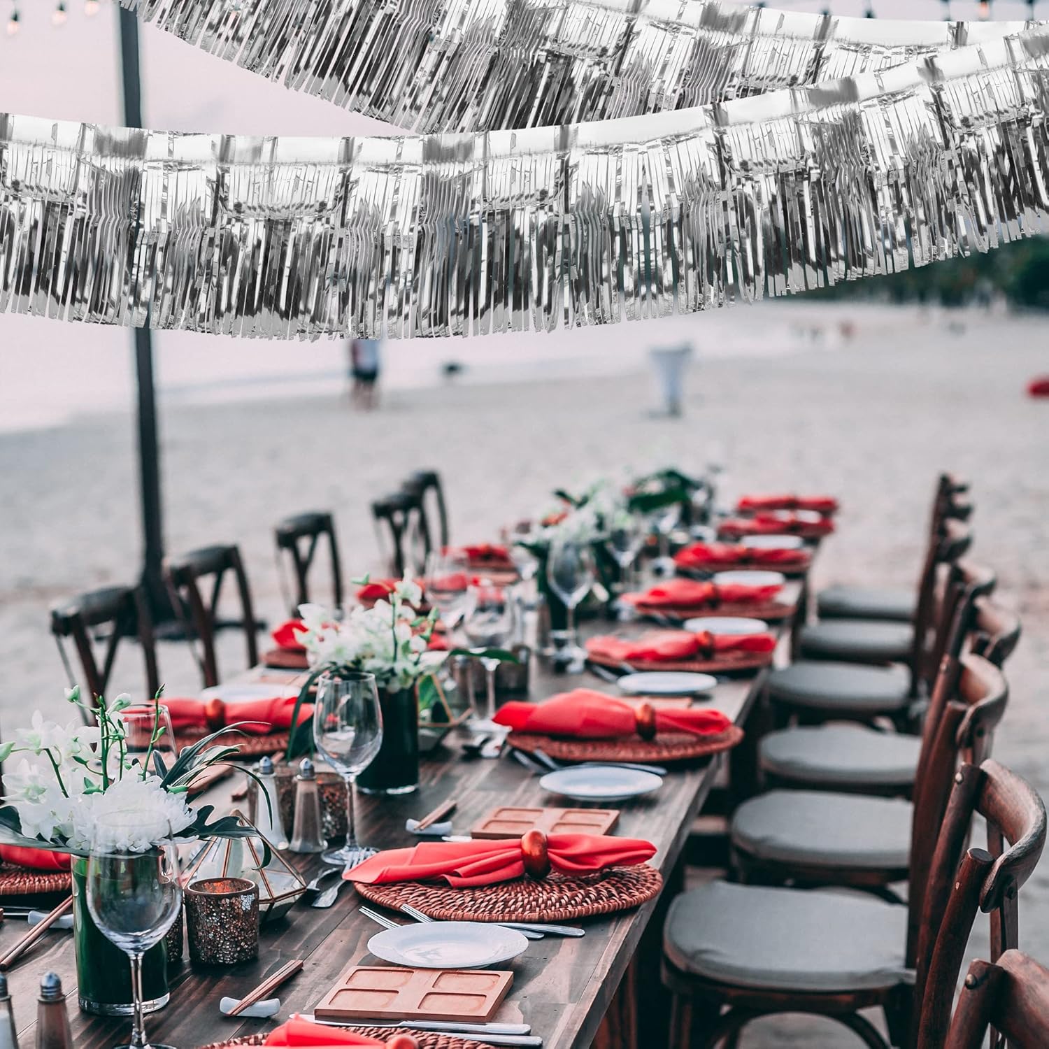 Metallic Foil Fringe Silver Garland Set for Wall Hanging Decoration - 4PC