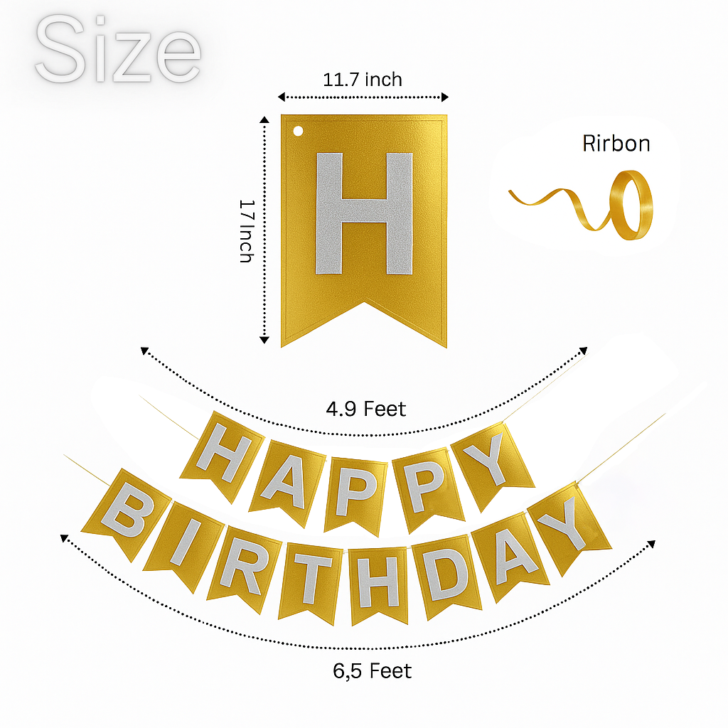 Elegant Gold Finish: This "Happy Birthday" banner shines with a stunning metallic gold color, adding a touch of glamour and sophistication to any birthday celebration.