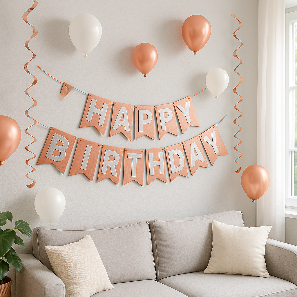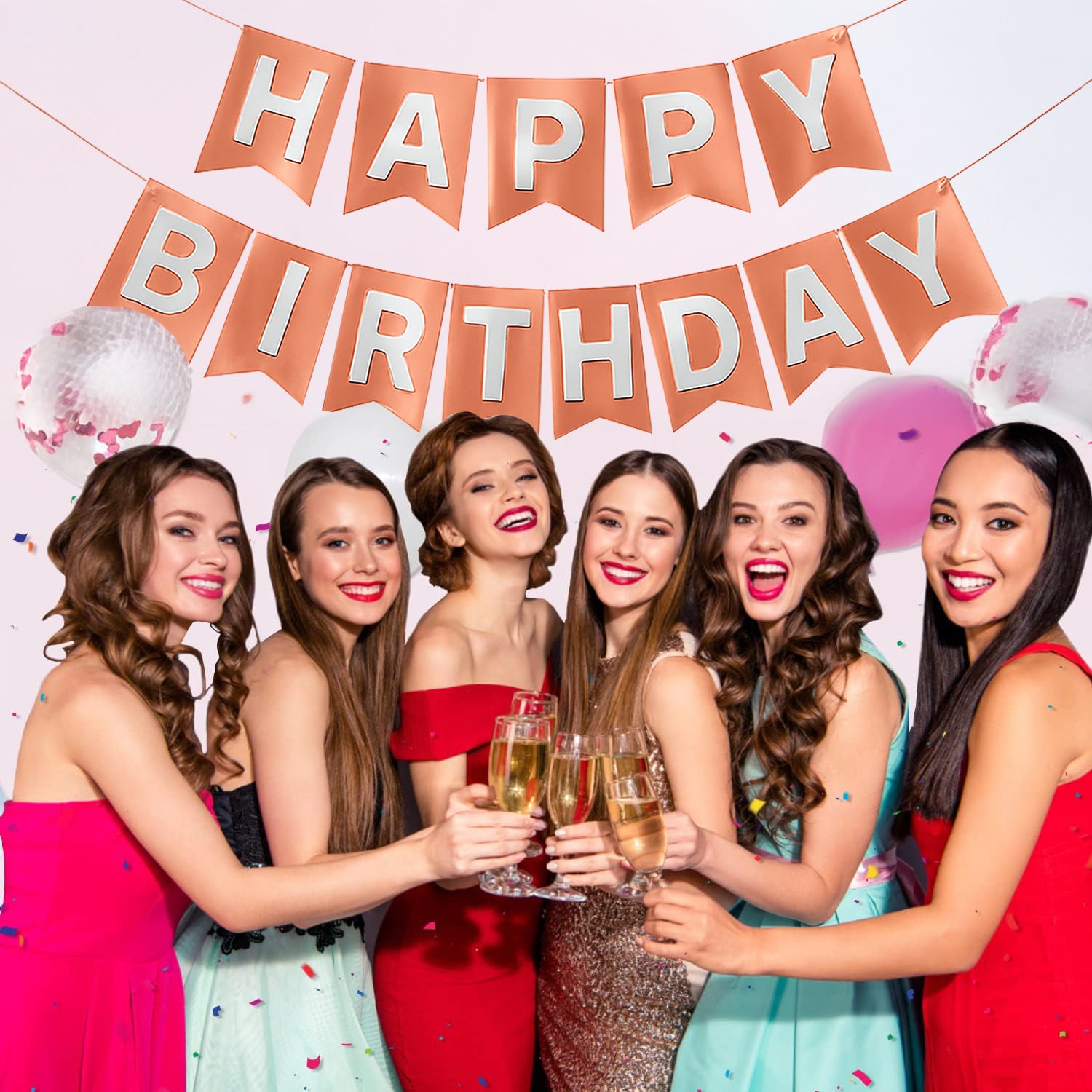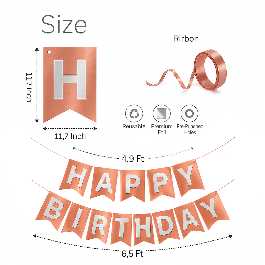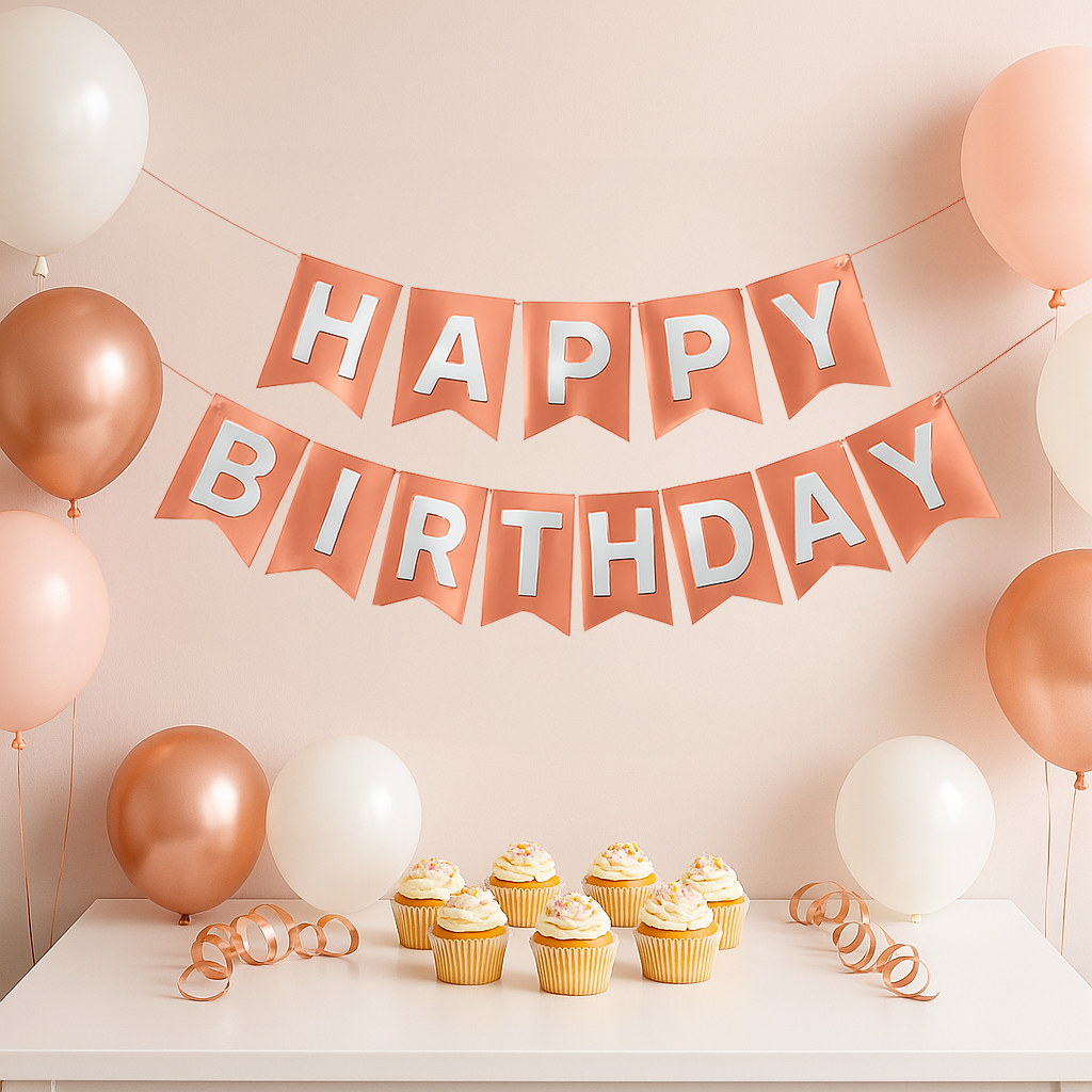 Elegant Rose Gold Finish: This "Happy Birthday" banner shines with a stunning metallic rose gold color, adding a touch of glamour and sophistication to any birthday celebration.