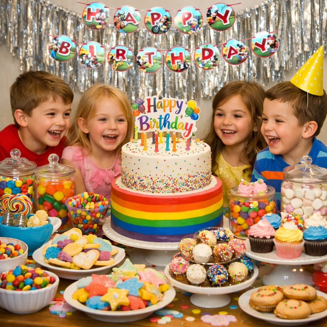 Classic Mickey Design:The banner features beloved Mickey Mouse graphics, making it a perfect decoration for children's birthday parties and Mickey-themed celebrations.
