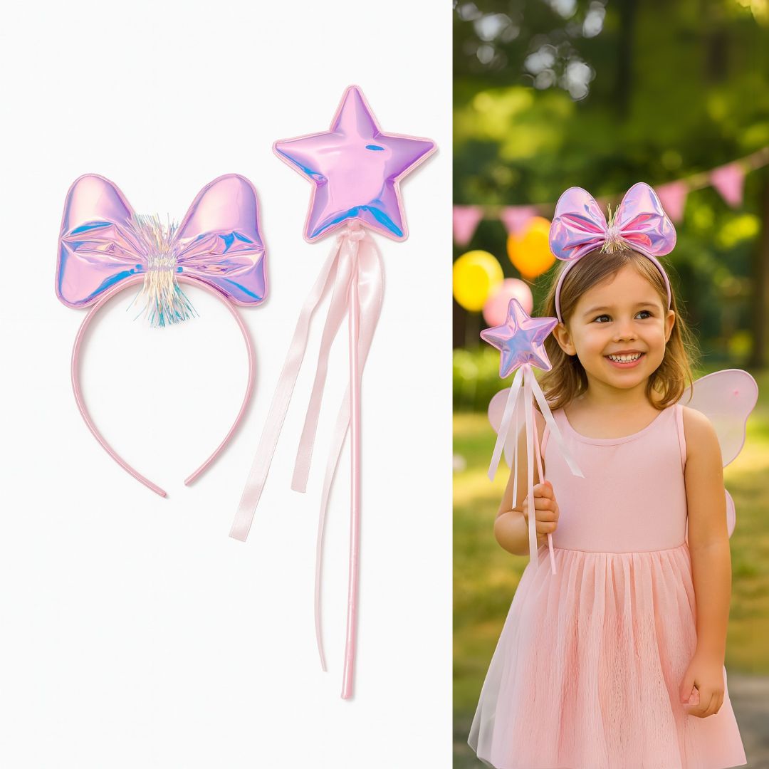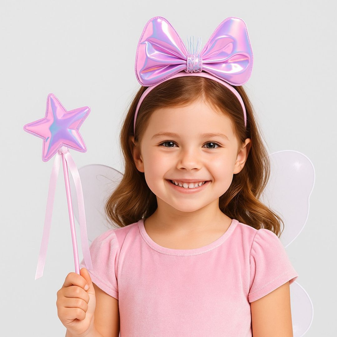 Perfect for Any Occasion: Ideal for birthdays, costume parties, fairy or princess dress-up, dance recitals, or everyday magical moments — this iridescent bow headband and wand set is a must-have accessory for every little dreamer.