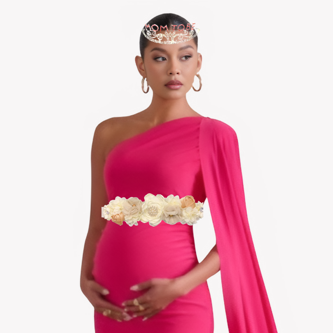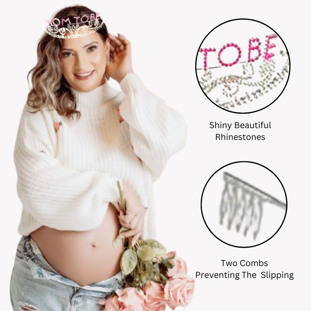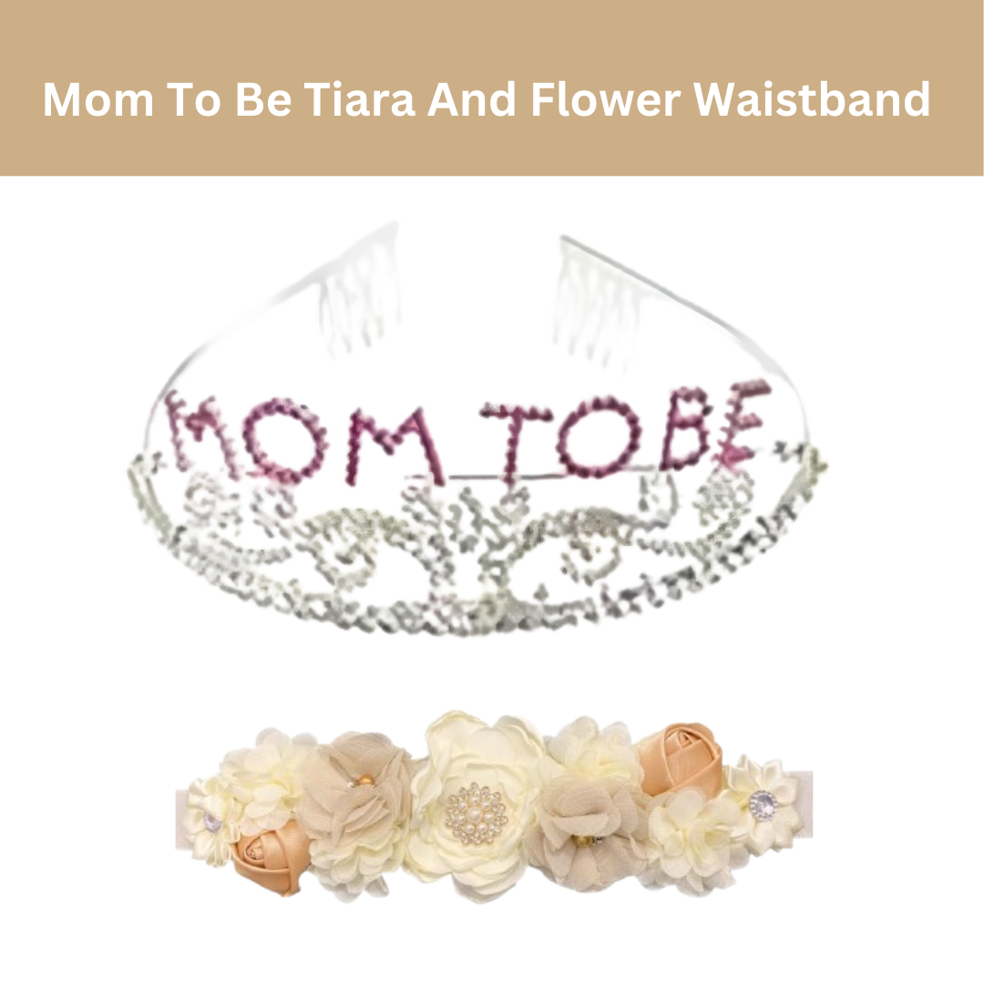 Mom To Be Crown with Pink & Silver Rhinestone and Floral Waistband Combo - Set of 2PC