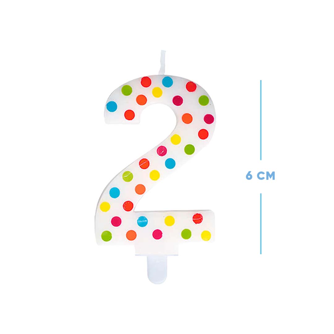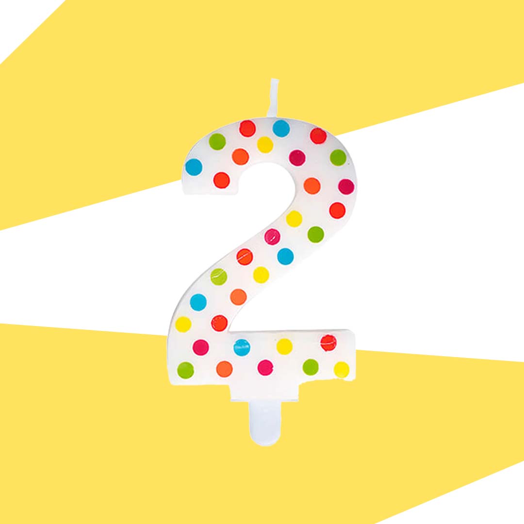 Multi Color Polk Dot Number 2 Candle - 1PC
