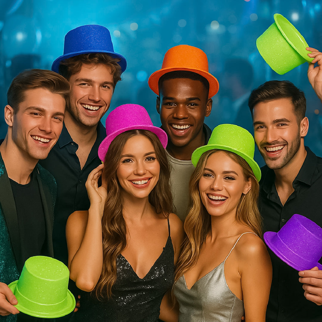 ♻️ Reusable & Eco-Friendly: Designed for multiple uses, these hats are easy to wipe clean and store for the next event. Made from recyclable materials, they’re a fun choice with a lower environmental impact.