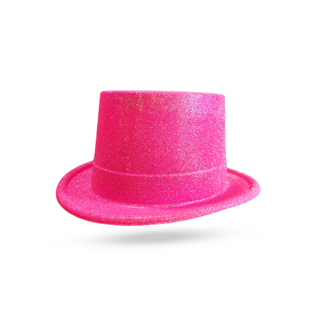 Bold Neon Pink with Glitter Finish: Stand out at any party or event with this vibrant neon pink fedora hat, covered in shimmering glitter for an eye-catching, glamorous look that turns heads.