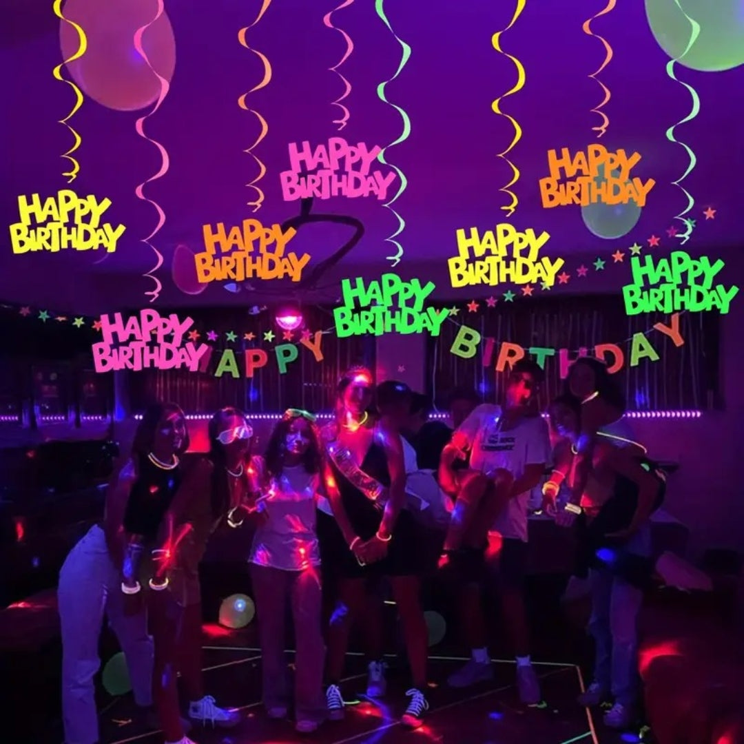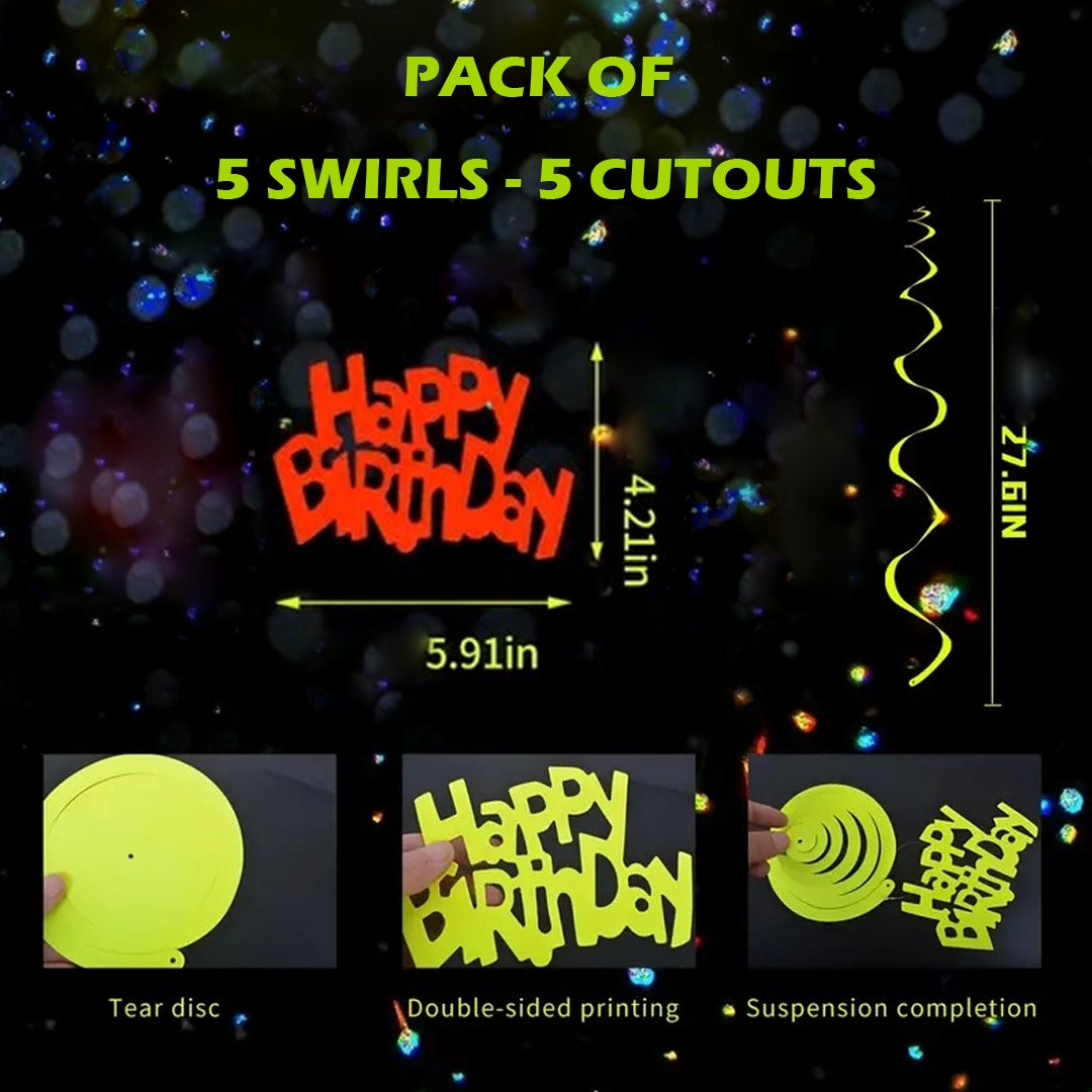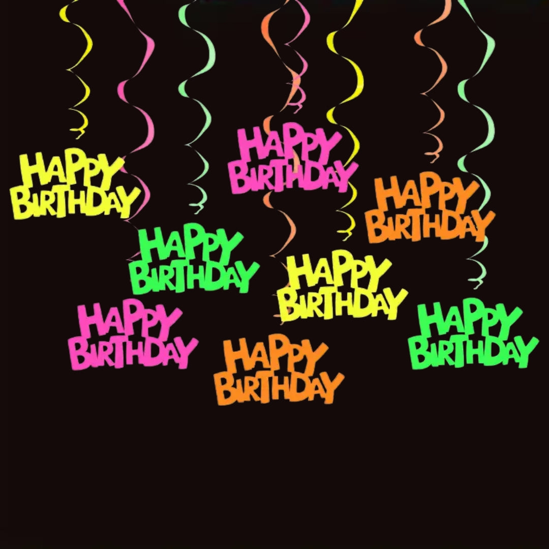 Neon UV/Glow In the Dark Happy Birthday Swirl Decoration - 5PC