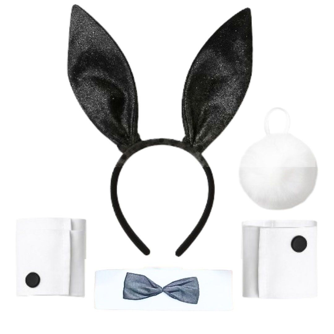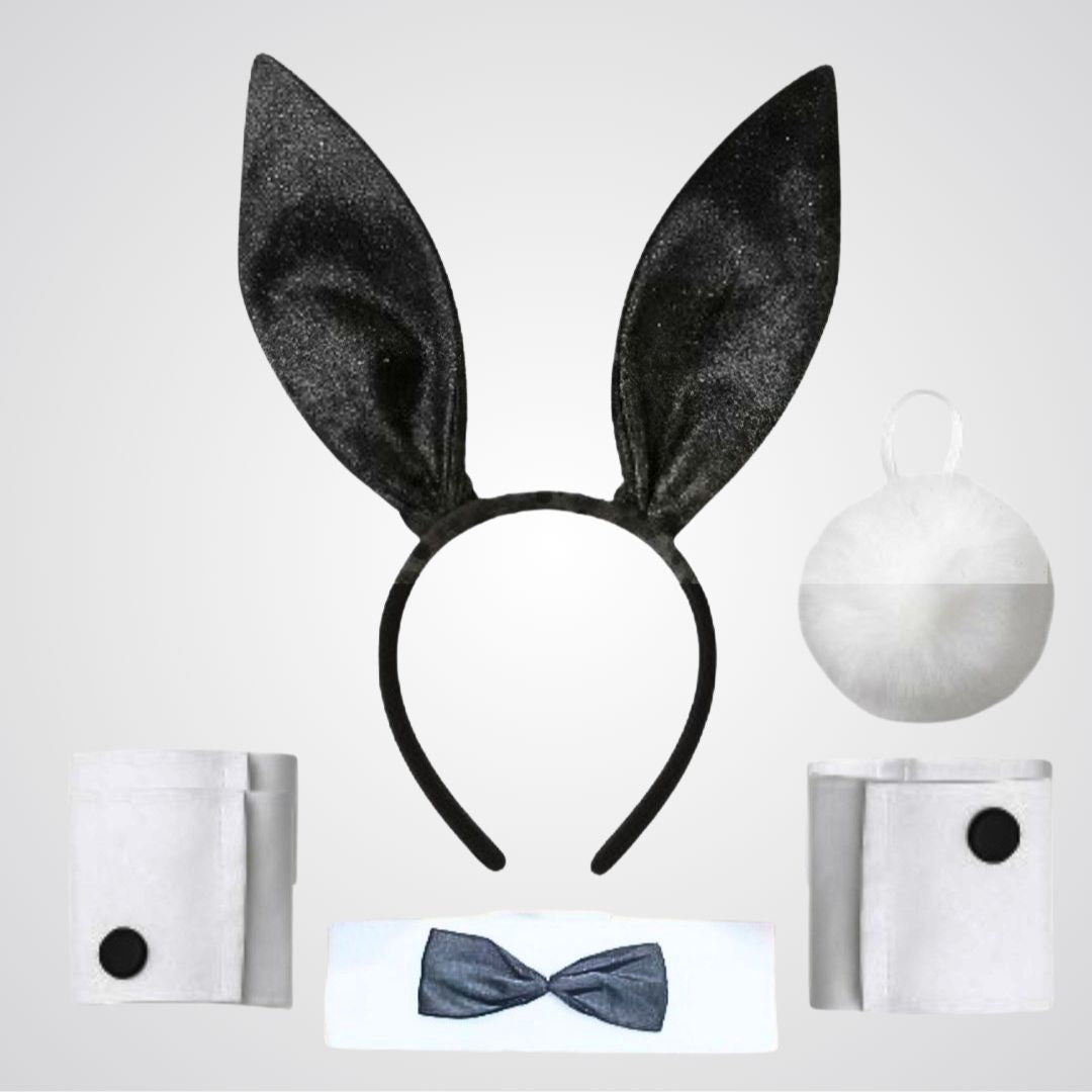 Playful Bunny Costume Set: This fun accessory kit includes everything you need to transform into a cute and mischievous bunny, featuring a pair of perky bunny ears on a headband, a matching necktie, and a fluffy bunny tail.
