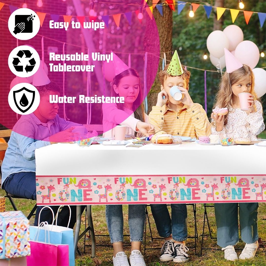 Adorable ‘One Wild Girl’ Theme for 1st bday Parties: Celebrate your baby girl’s big milestone with this vibrant “One Wild Girl” tablecover! Featuring cheerful pink tones, animal prints, and playful “Fun to Be One” text, it adds instant charm to your party décor. It’s the perfect addition for a jungle-themed or girly bday bash, setting the stage for a festive and memorable event filled with smiles, giggles, and great photos.