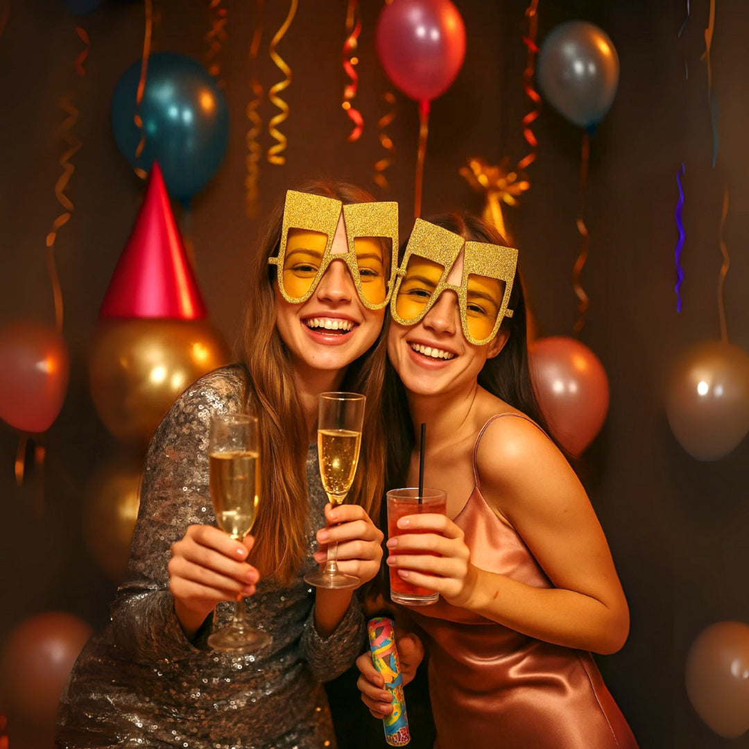 Perfect for Any Celebration: Ideal for birthdays, bachelorette parties, New Year’s Eve, cocktail nights, or photo booths—these golden wine glitter sunglasses bring extra flair and fun to every occasion!