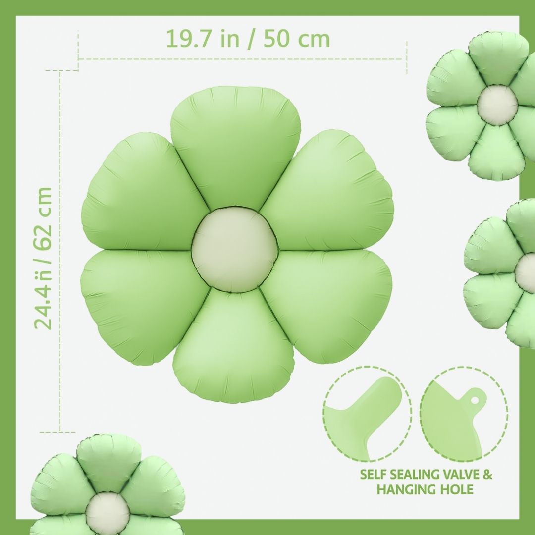 Beautiful Flower-Shaped Design: This 24-inch foil balloon is shaped like a delicate pastel green flower with rounded petals and a soft center, adding a whimsical and charming element to any celebration or décor setup.