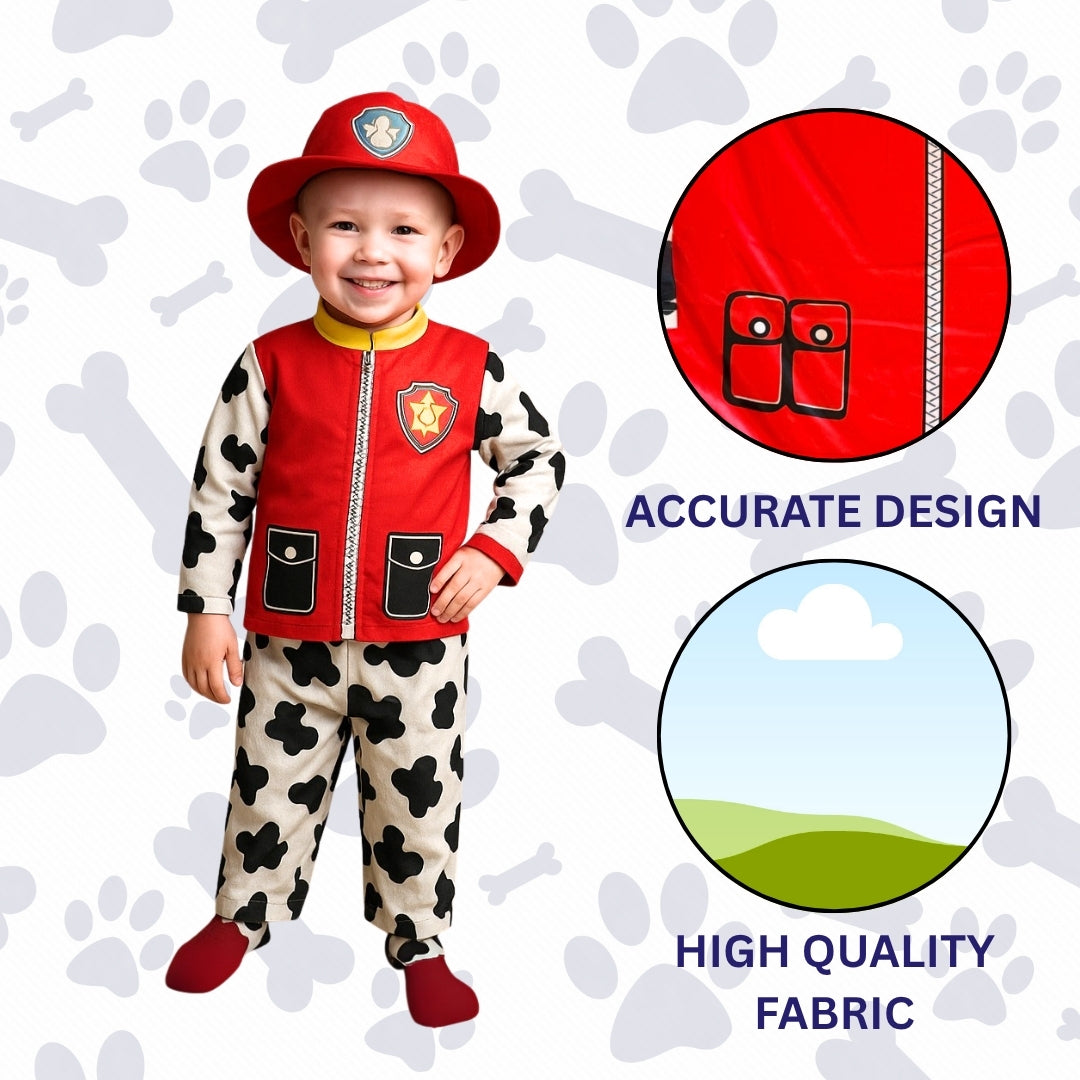 Adorable Fire Pup-Inspired Design: Styled after a brave and lovable rescue pup, the outfit features classic Marshall elements like the red-and-white color scheme, firefighter-style jacket, and bold paw graphics—ideal for fans of the hit paw-themed series.