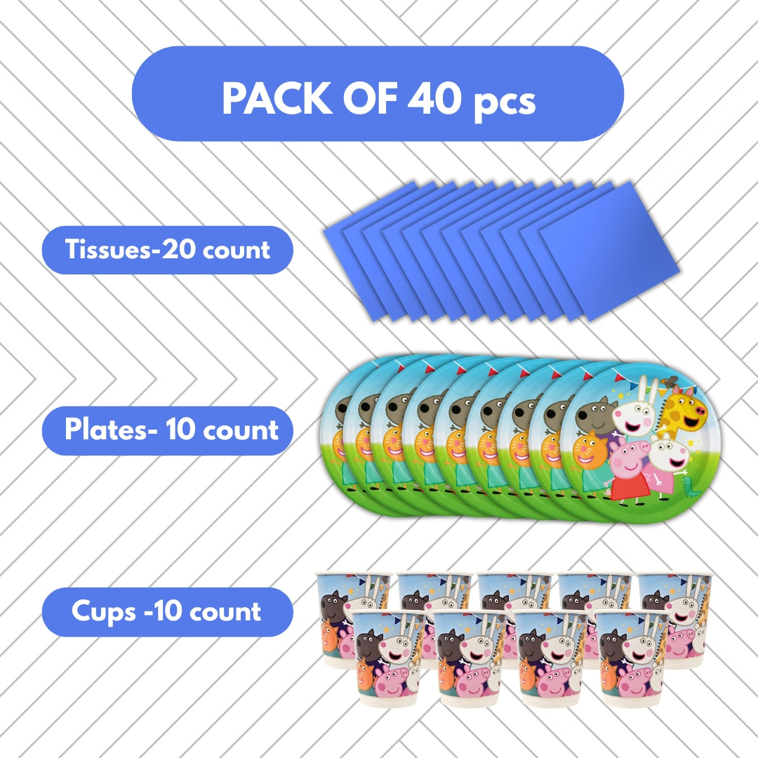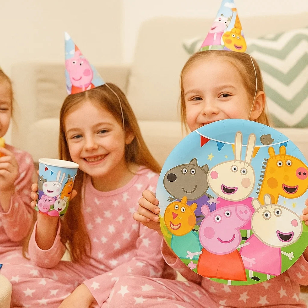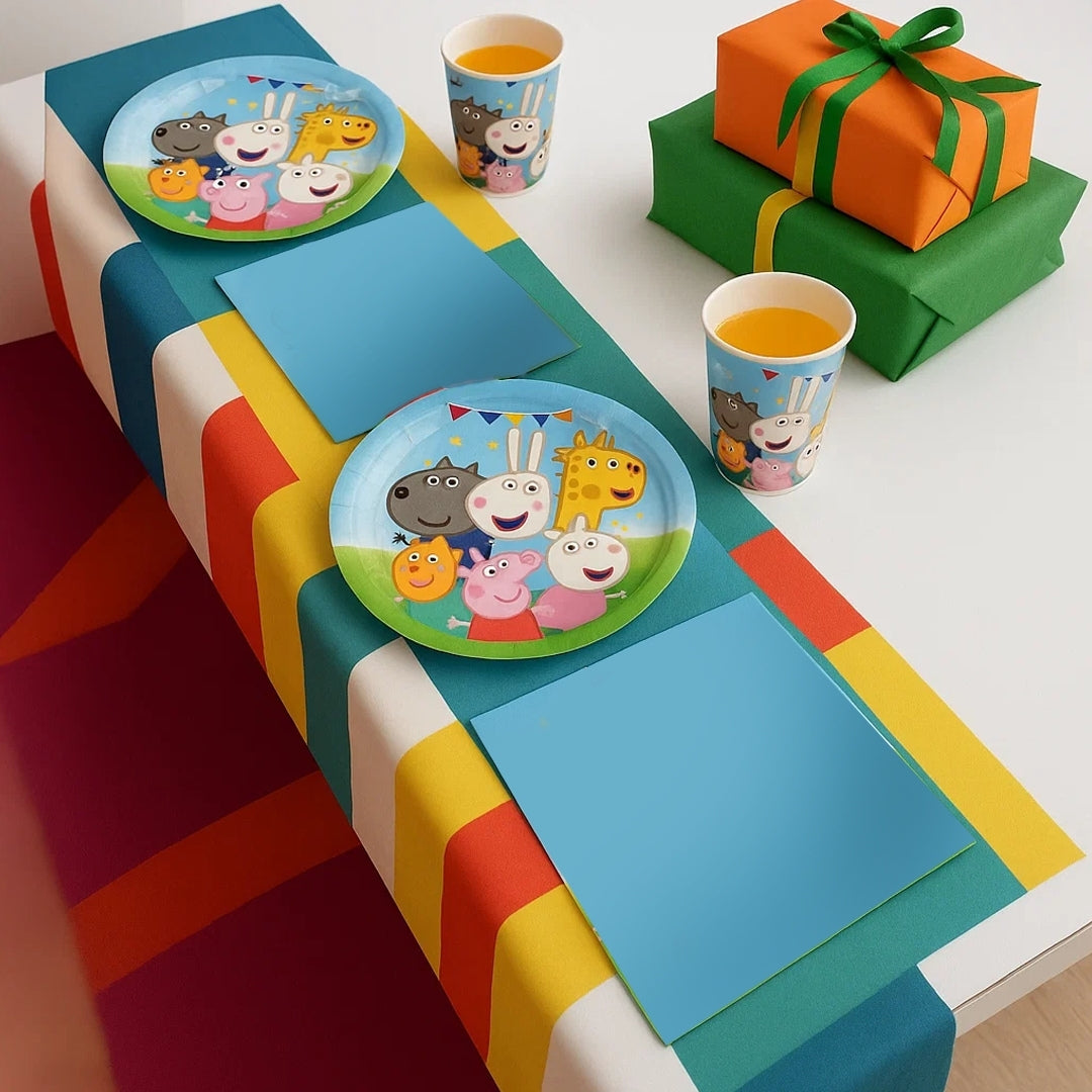 Charming Cartoon Pig Design: Featuring a lovable cartoon pig character and bright, cheerful colors, this tableware adds a playful and joyful touch to your party décor. It's perfect for creating a fun and engaging atmosphere that kids will love.