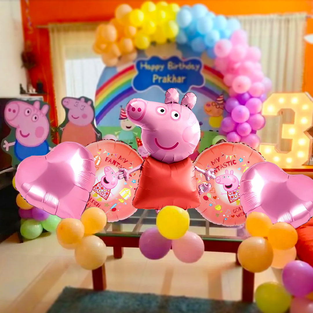 PEPPA PIG DESIGN: This set includes a delightful assortment of Peppa Pig characters, allowing you to enjoy the company of Peppa and their friends in balloon form. Accompany the set with various other shapes such as hearts, round foil, and stars to celebrate with your favorite piggy pal and create an atmosphere of pure delight.