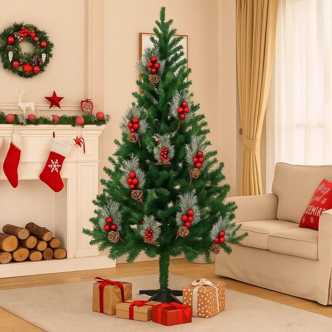 Easy Assembly & Reusable: Designed with hinged branches for quick setup—simply connect the sections, shape the branches, and add the pinecone & berry inserts. Made from high-quality materials for years of beautiful holiday decorating.