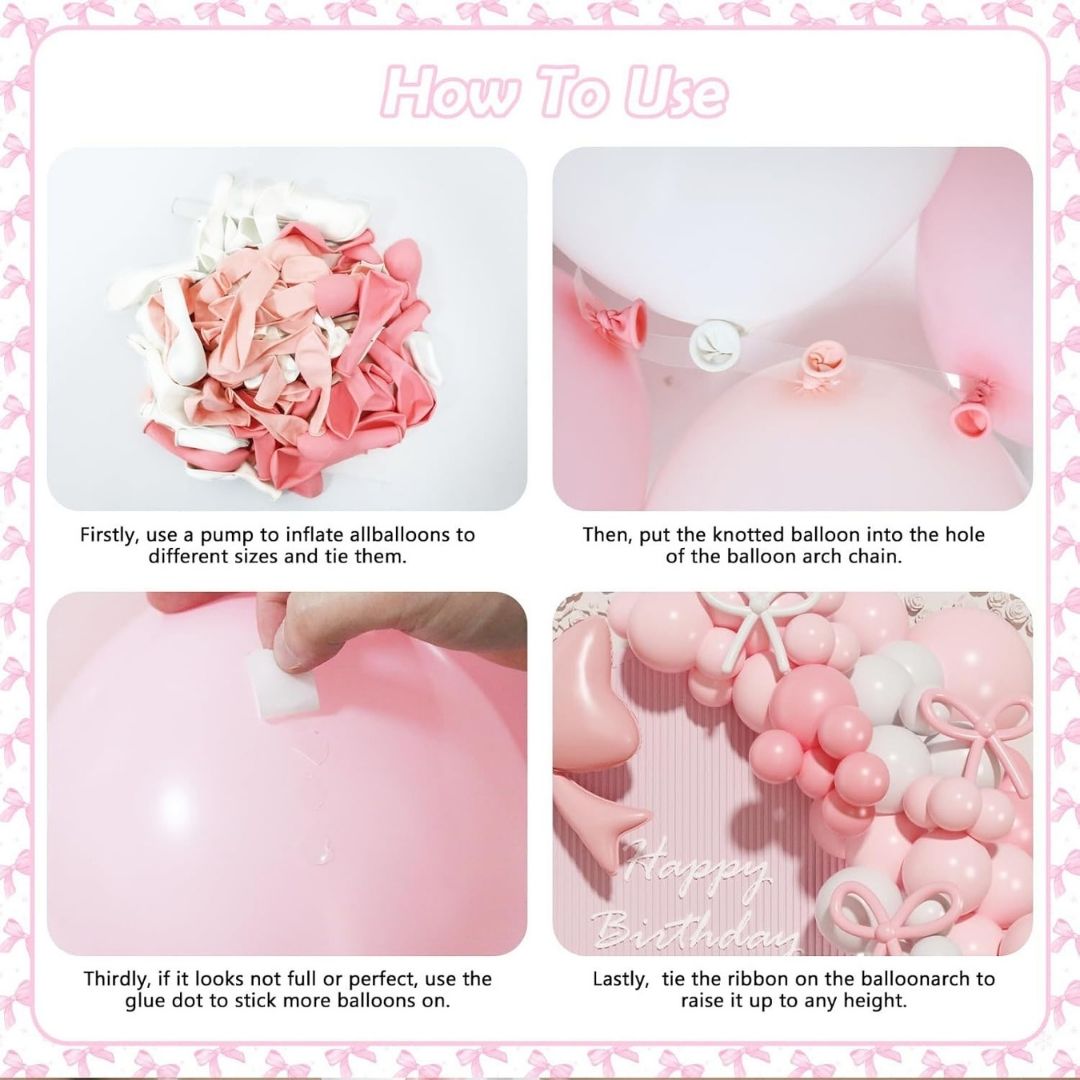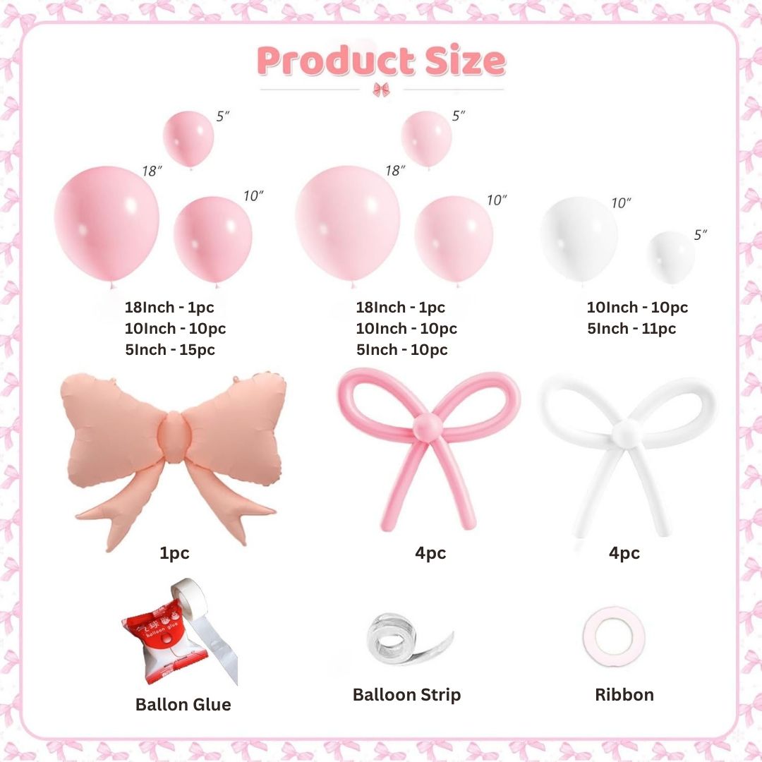 Pink Bow Foil Balloon with Pastel Pink and White Balloon Garland Kit - 80PC