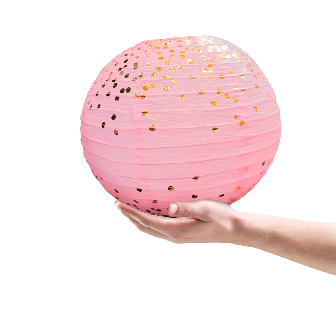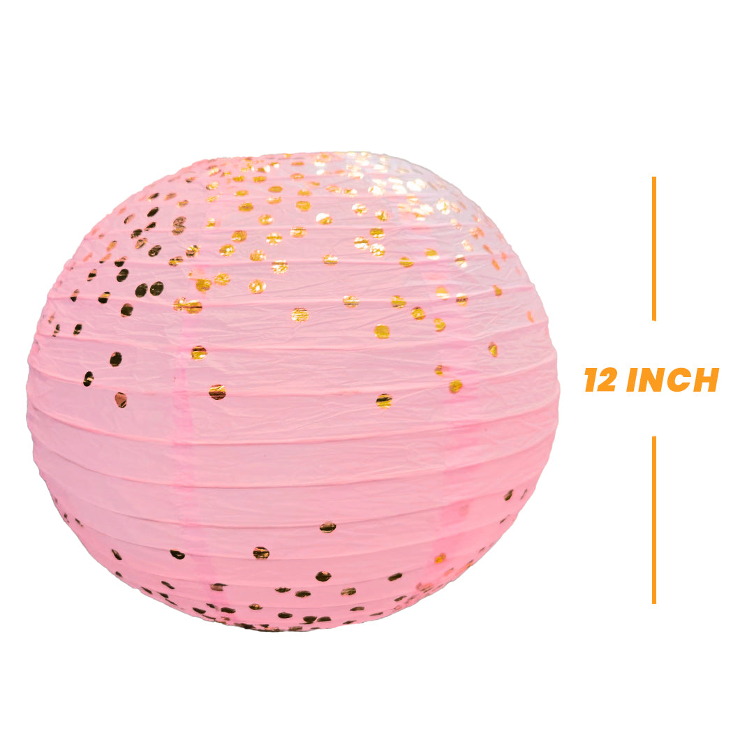 Wanna Party Pink Gold Party Decorations 12 inch Round Chinese Paper Lanterns,Pink with golden polka dots Paper Lanterns Decorative for Wedding Baby Shower Birthday Party