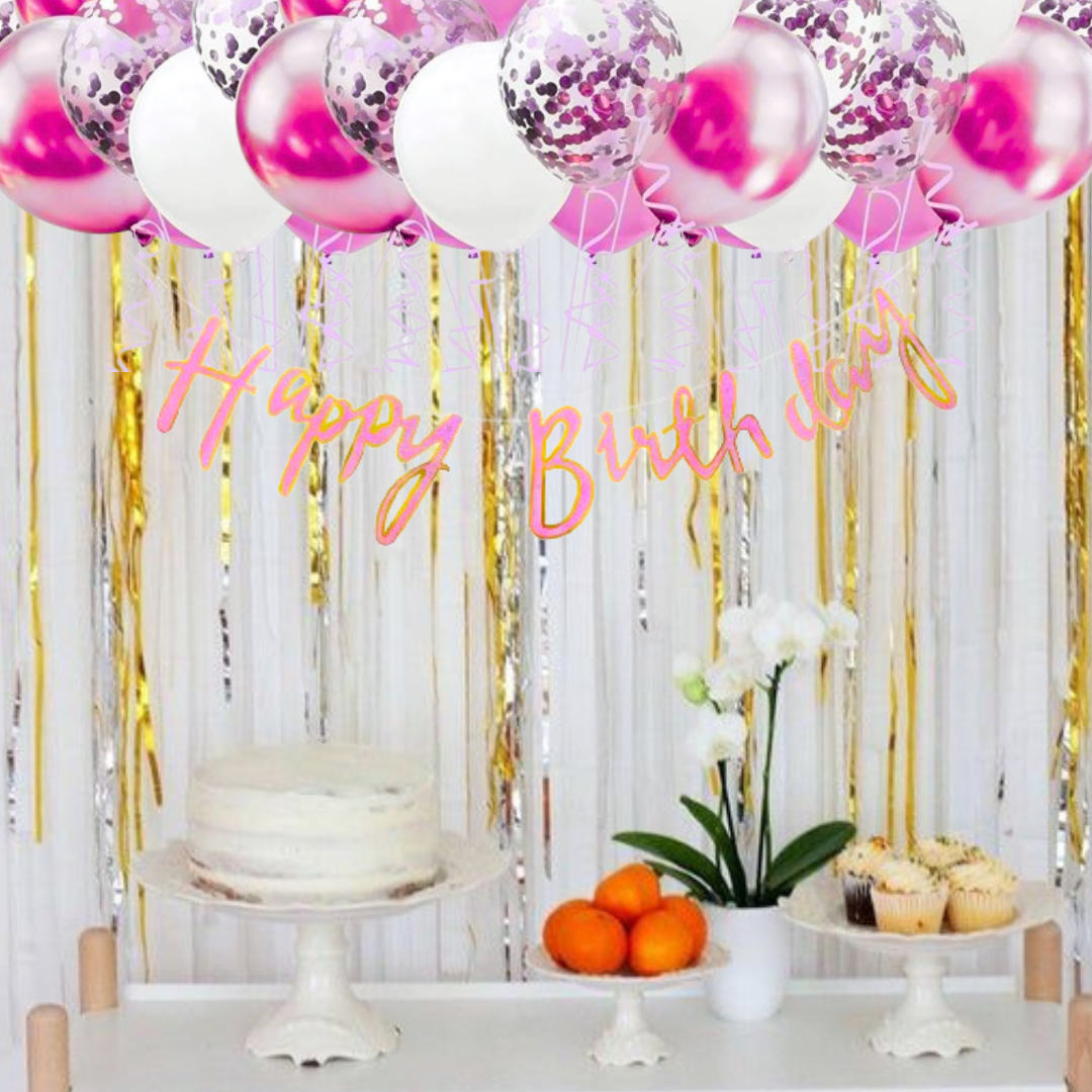 QUALITY PRODUCT | ELEVATE YOUR EXPERIENCE: Have no worries at all! We are very confident with the quality, durability & incredibly stylish of our sturdy shiny PINK Happy Birthday Banner and Balloons Set. We are always happy to help you regarding this happy birthday decoration set . This happy birthday Pink banner will bring you a smile and joy on your happy birthday decorations for women