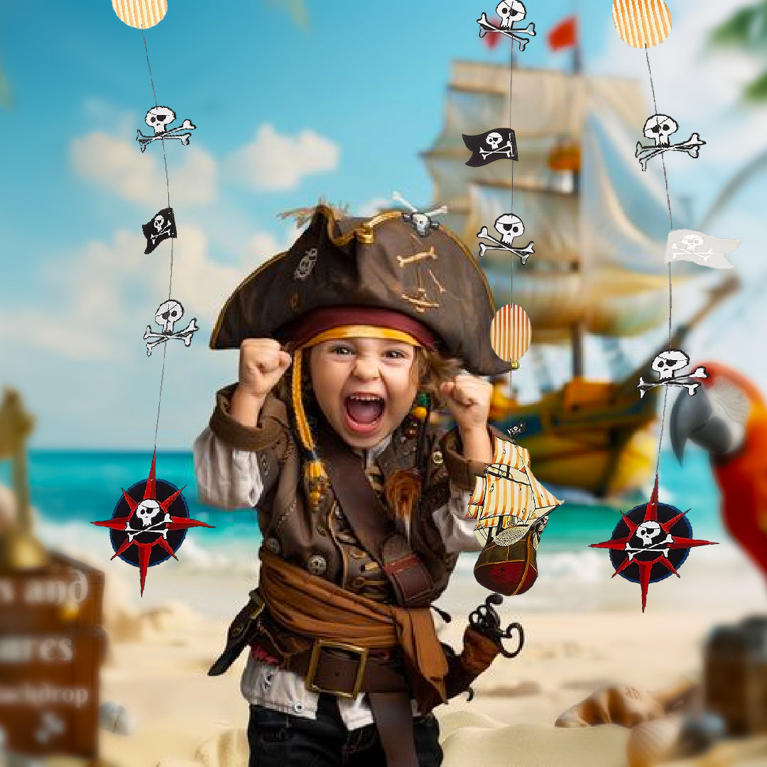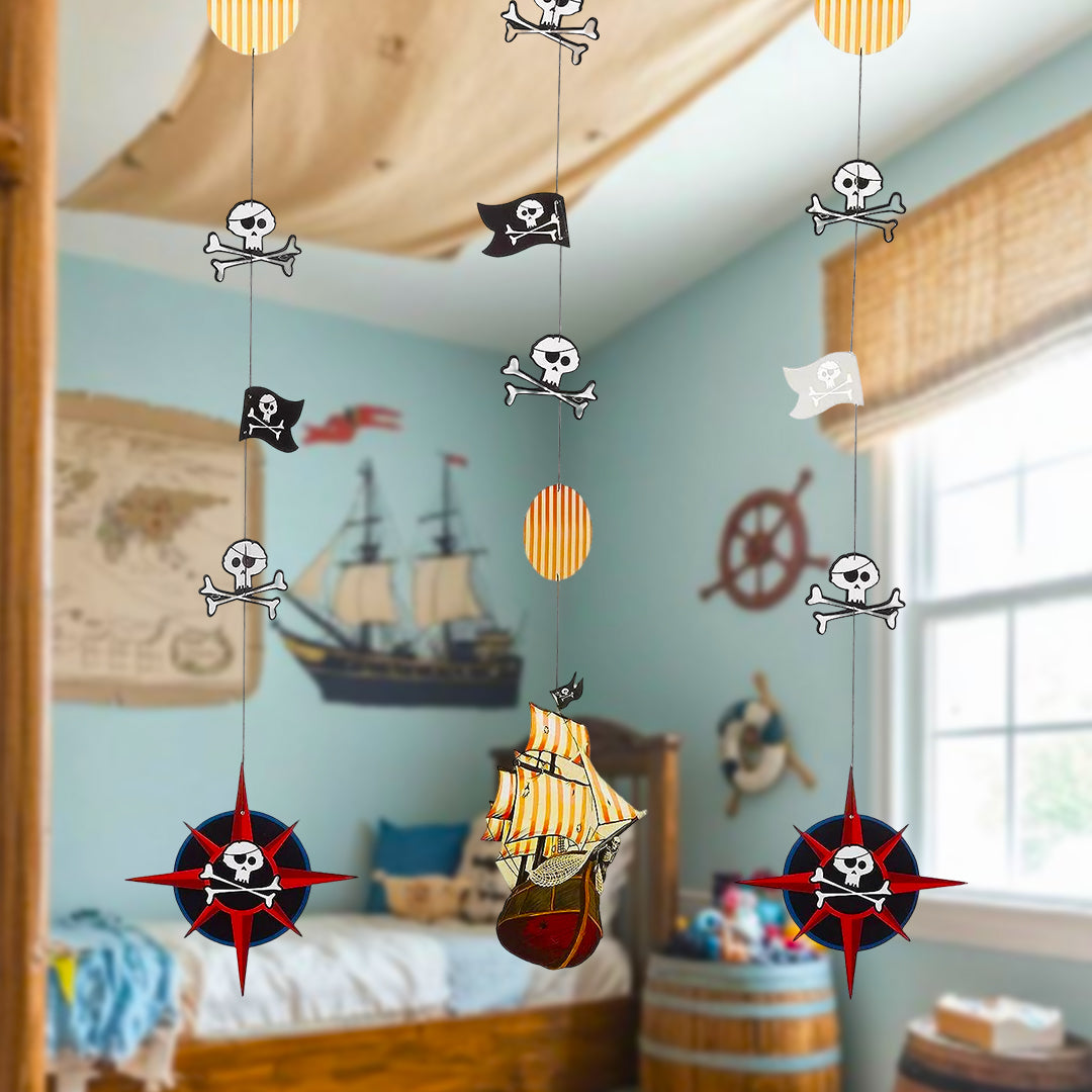Themed Pirate Adventure Décor: Transform your space into a high-seas adventure with these pirate-themed hanging cutouts. Designed with attention to detail, these cutouts feature fun graphics like treasure chests, pirate hats, and ships. They bring an exciting visual element to your setup and help build an immersive atmosphere for themed celebrations and gatherings.