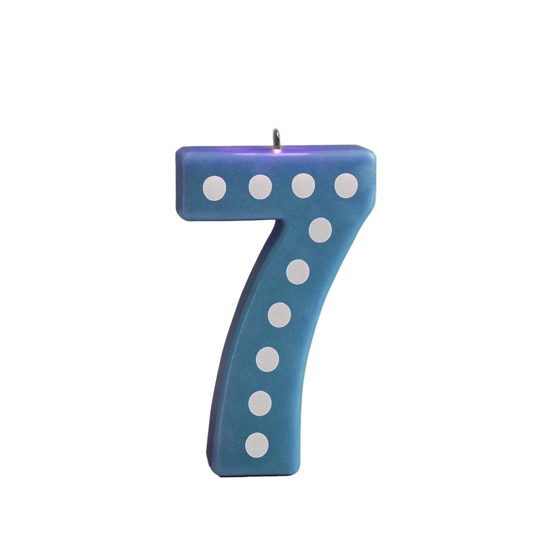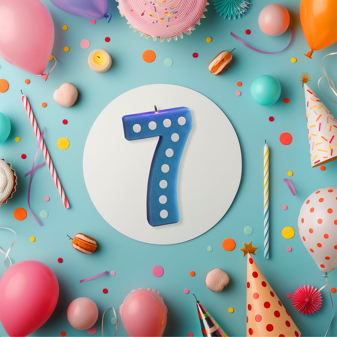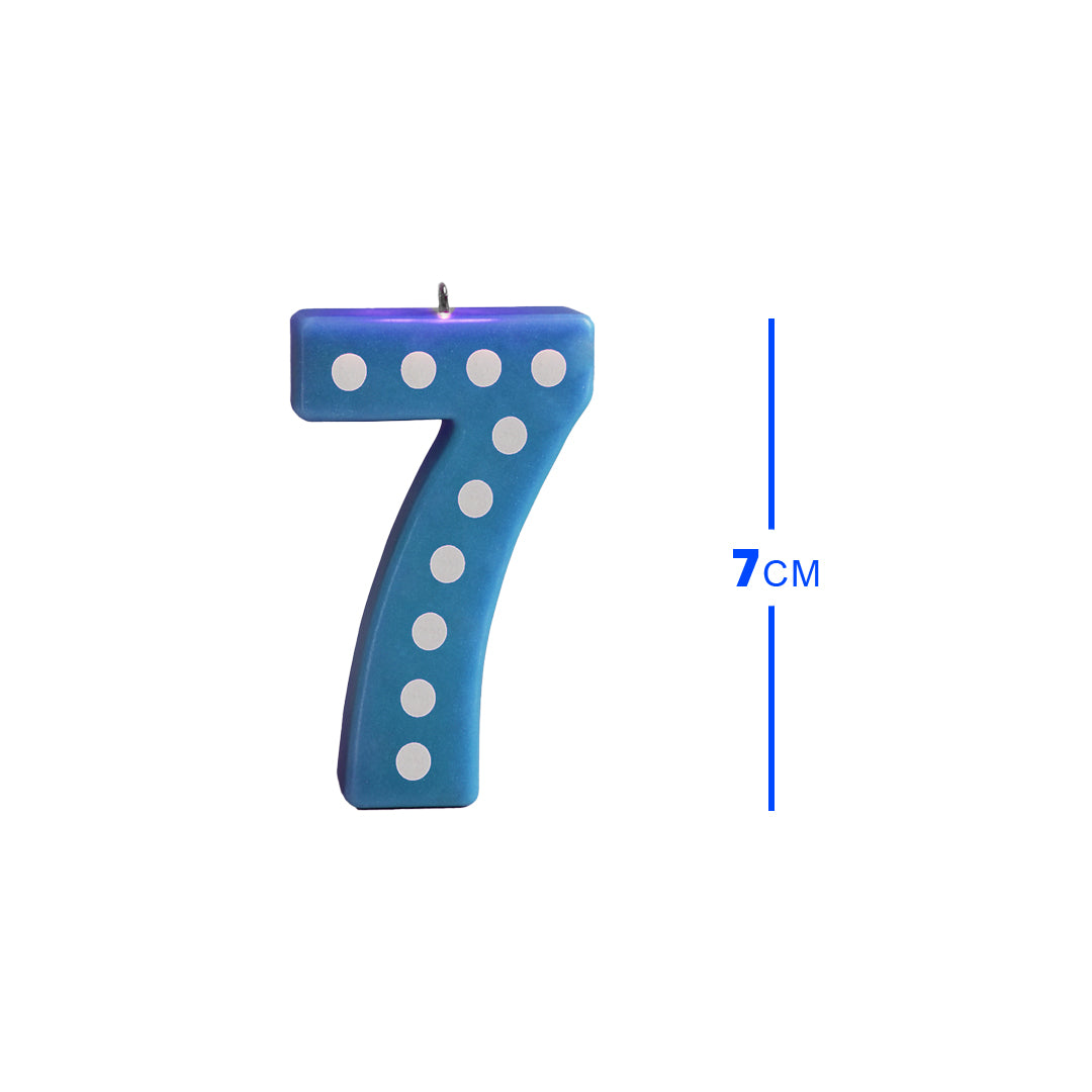 Number 7 Blue Candle w/ Polka Dots - 4 inches - 1PC