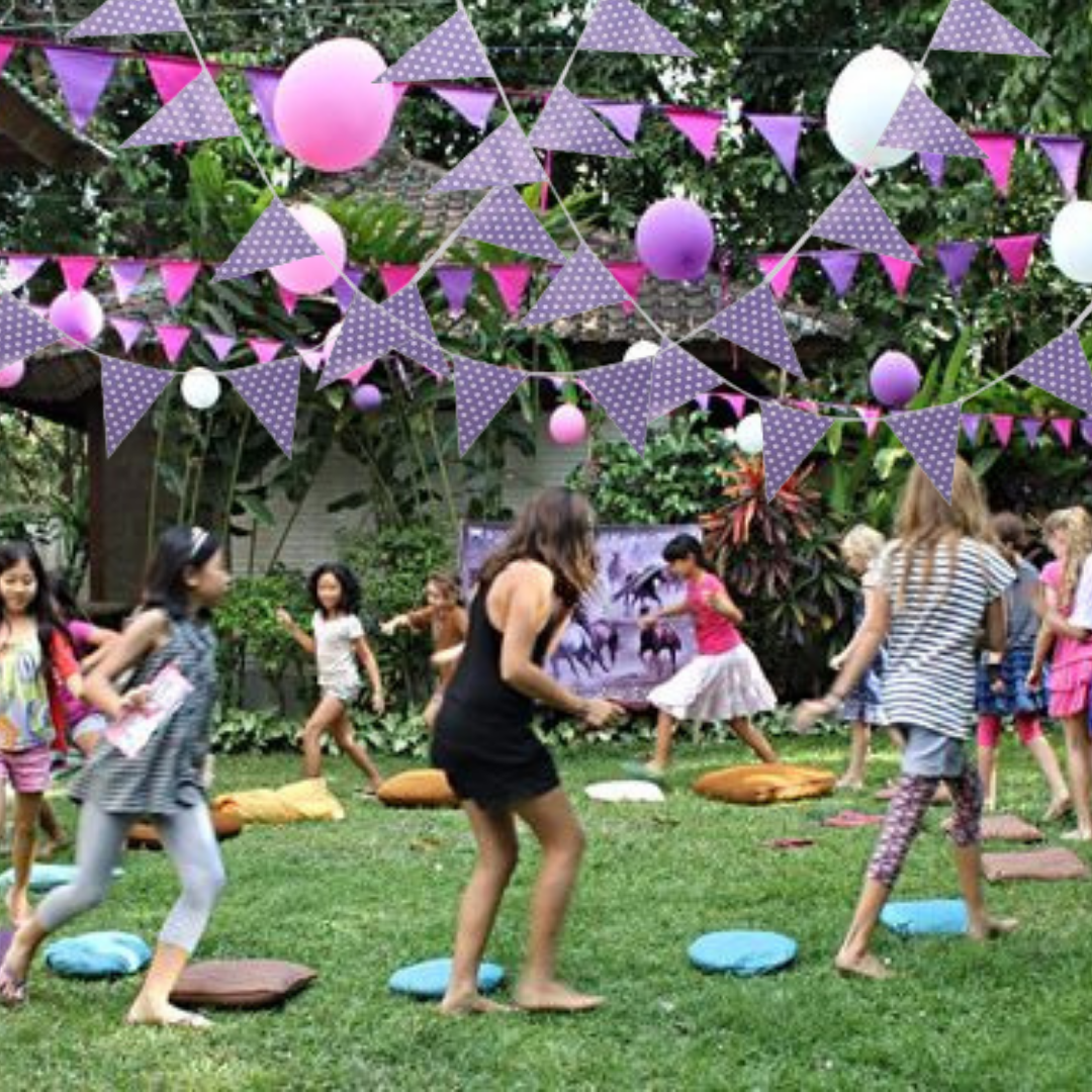 Add some colour to your party with this polka dot bunting banner. Bunting is made from cardboard flags joined together with colour coordinated ribbon. This purple coloured polka dots buntings are a perfect match with other party decorations. These are printed with bright colors, and will look great on your house or business.